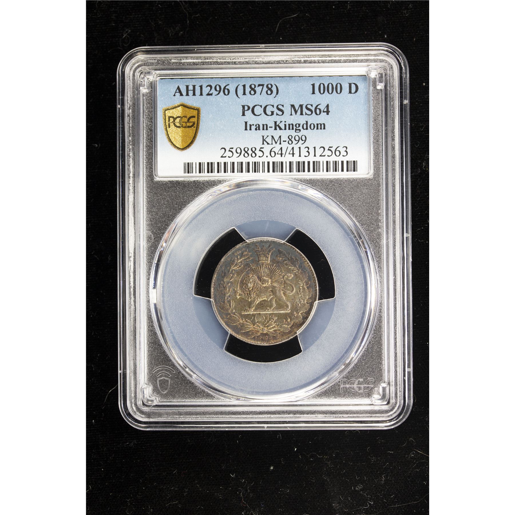 IRAN: Nasir al-Din Shah, 1848-1896, AR 1000 dinars, Tehran, AH1296. PCGS MS64