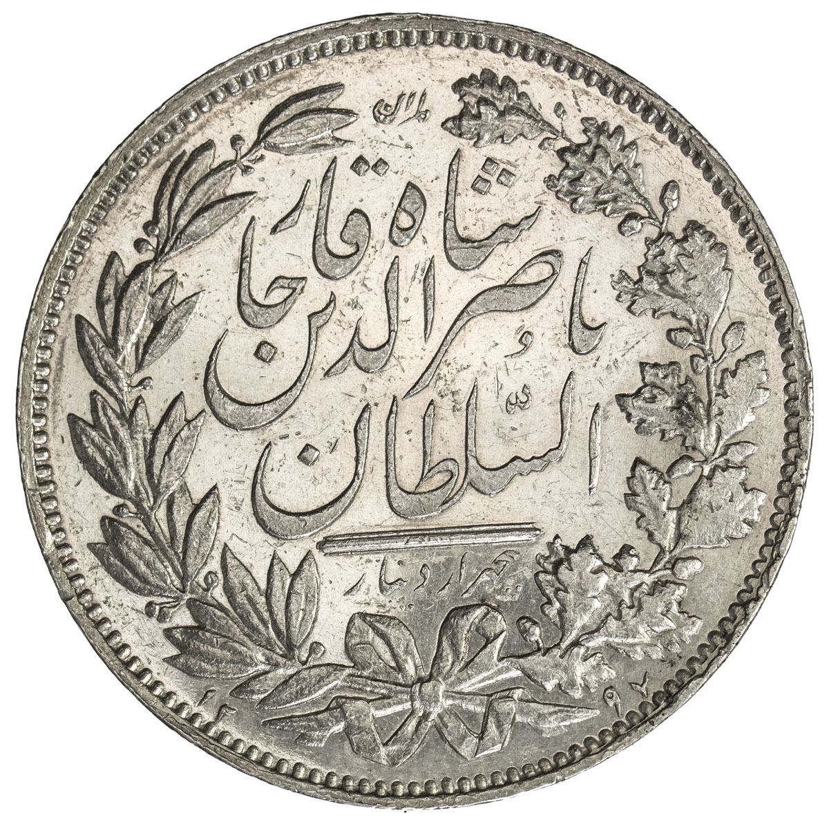 IRAN: Nasir al-Din Shah, 1848-1896, AR 5000 dinars, Tehran, AH1297. AU