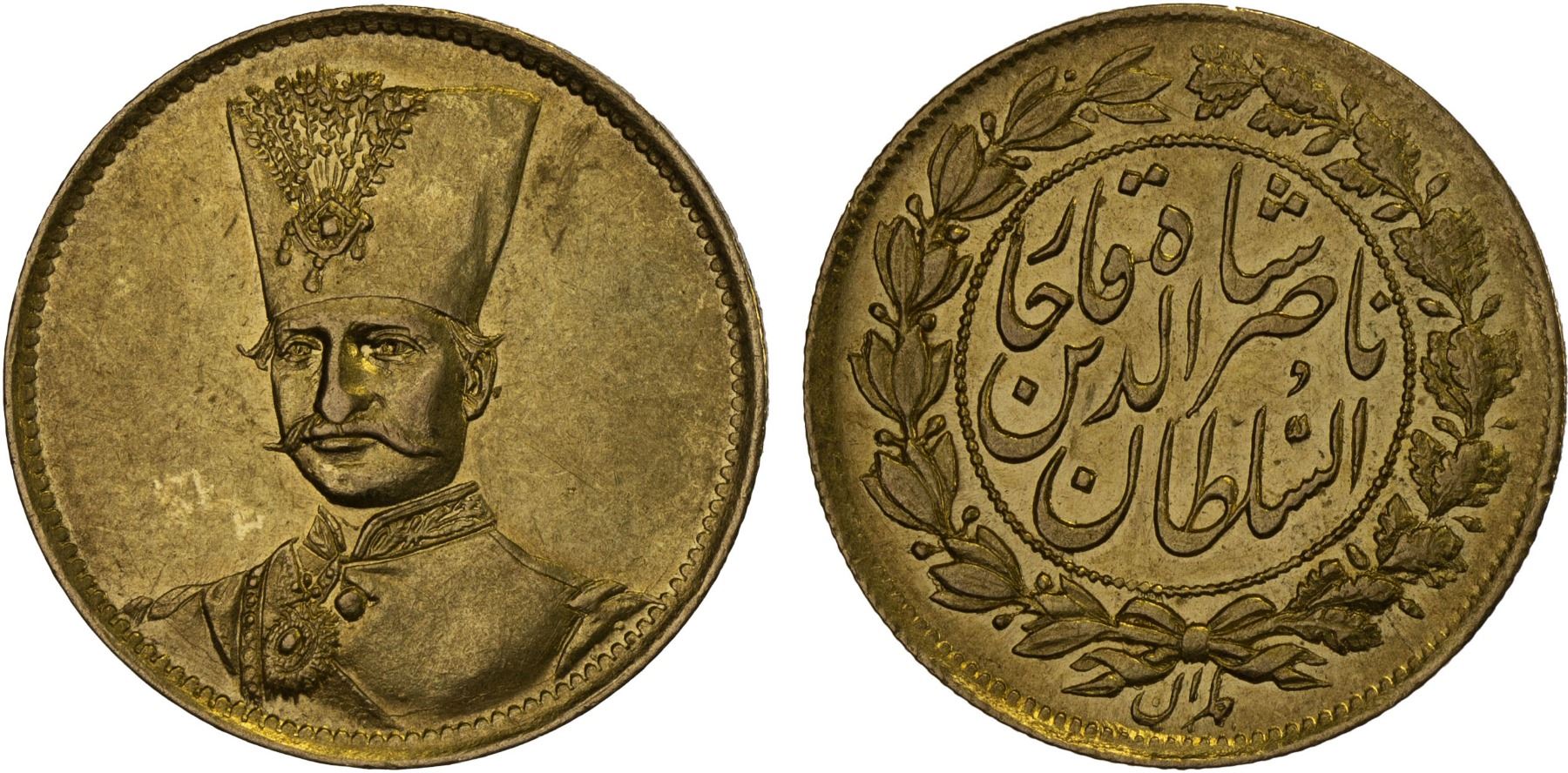 IRAN: Nasir al-Din Shah, 1848-1896, AV toman (2.88g), Tehran, ND, lustrous AU