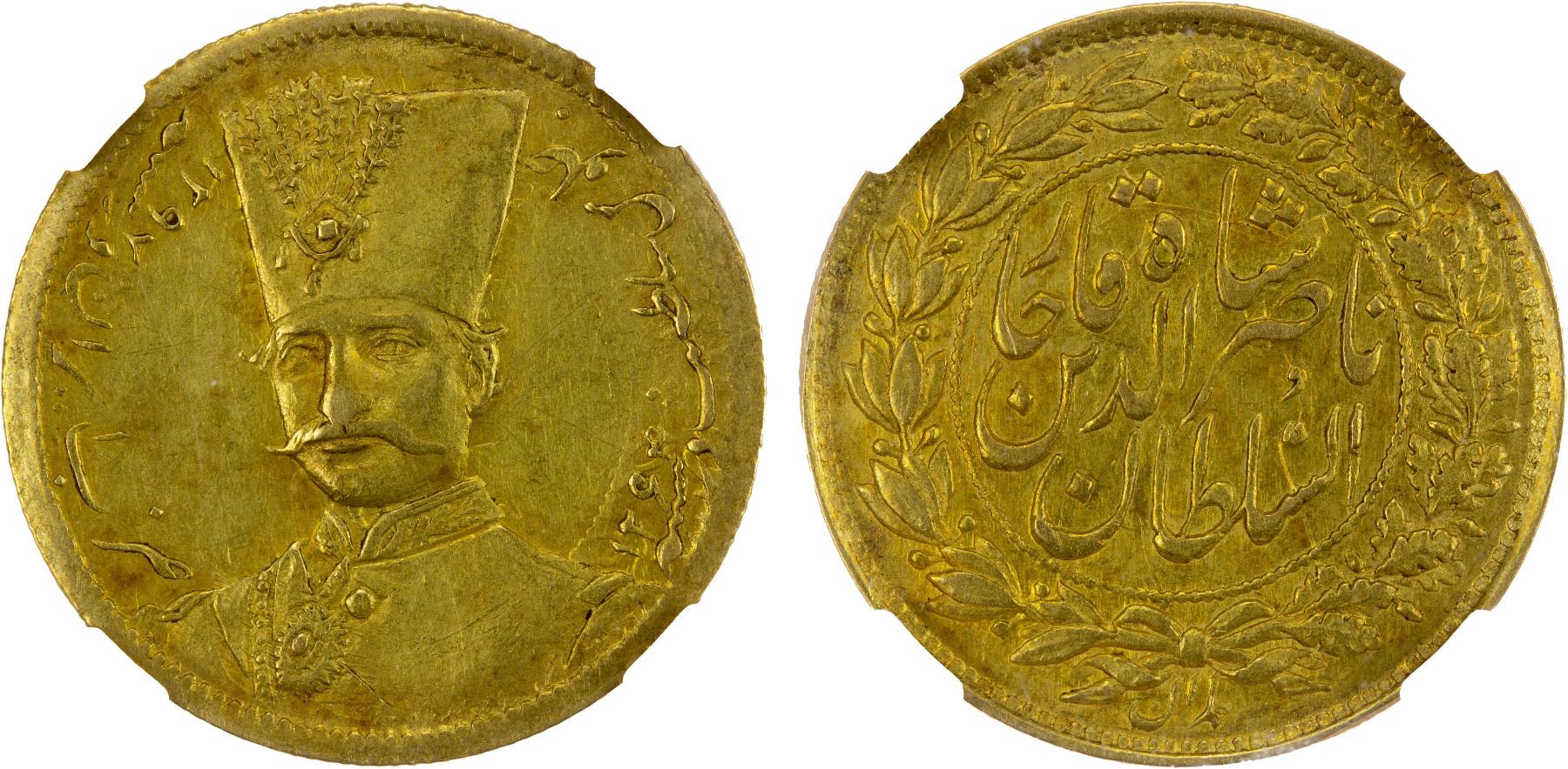 IRAN: Nasir al-Din Shah, 1848-1896, AV toman, Tehran, AH1297, NGC AU details