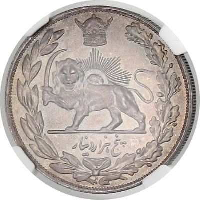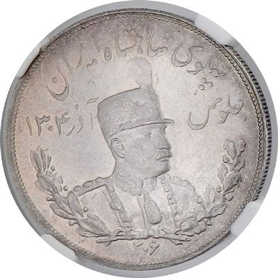IRAN: Reza Shah, 1925-1941, AR 5000 dinars, SH1306-H, KM-1106, Heaton mint specimen strike, NGC graded Specimen-66, RR.