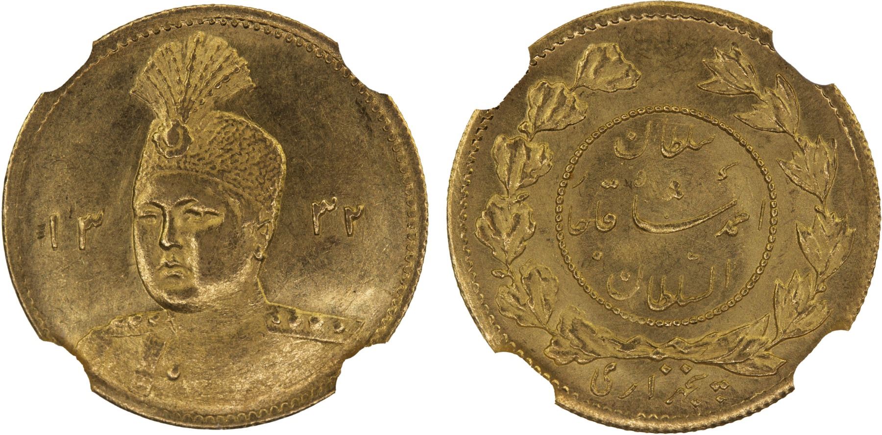 IRAN: Sultan Ahmad Shah, 1909-1925, AV 5000 dinars (1/2 toman), AH1332, NGC MS63