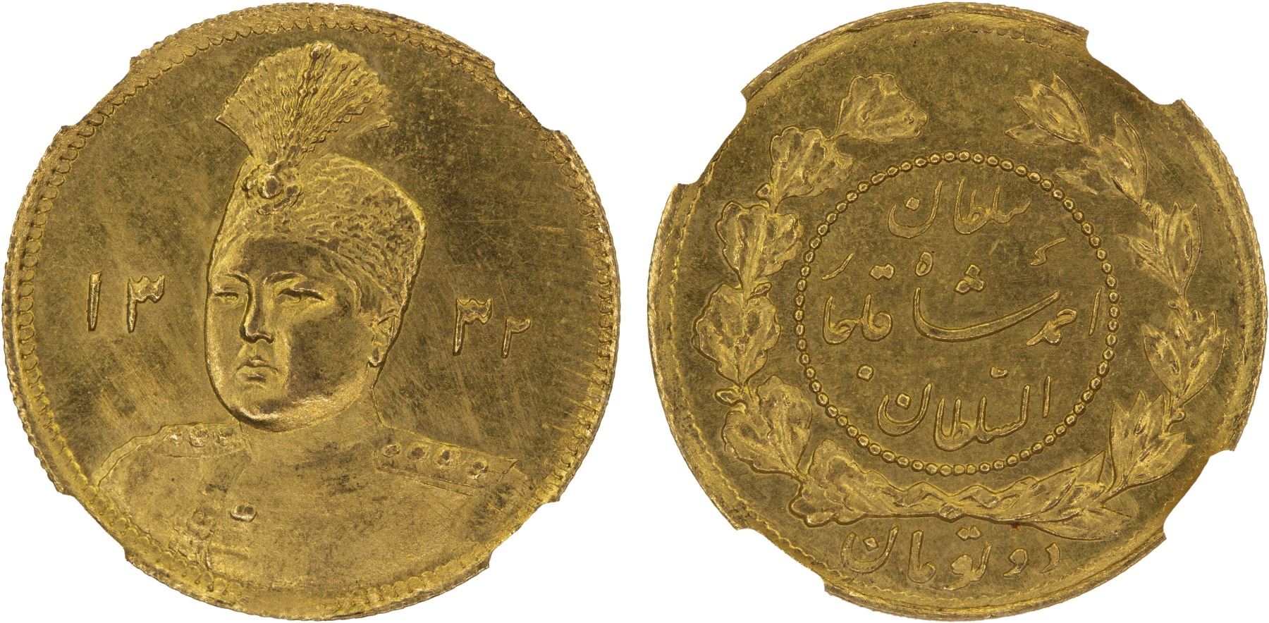IRAN: Sultan Ahmad Shah, 1909-1925, AV toman, AH1332, NGC MS63