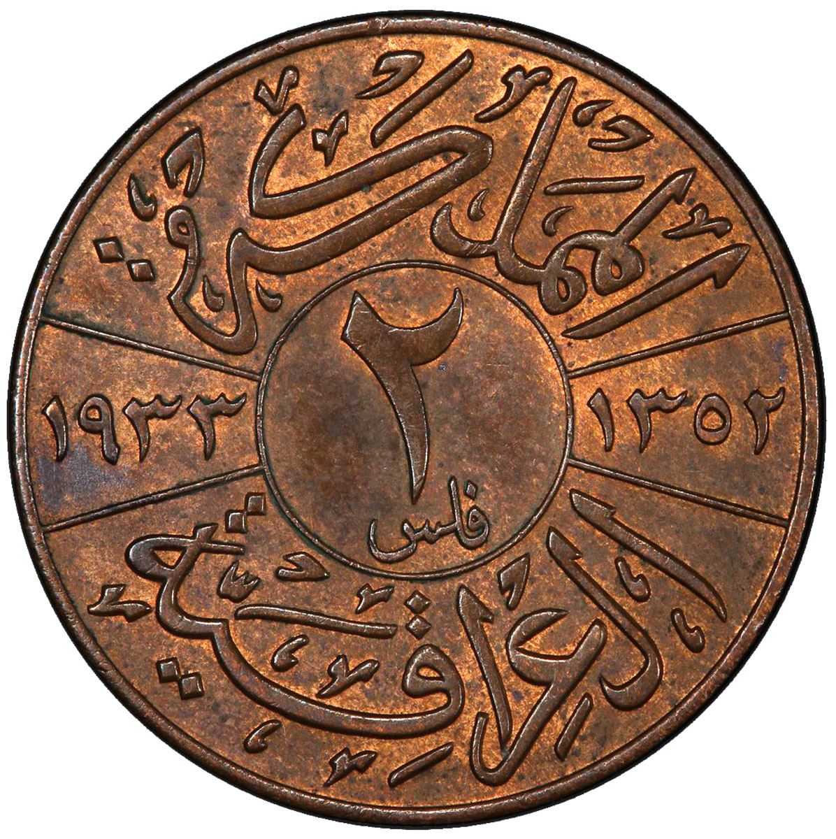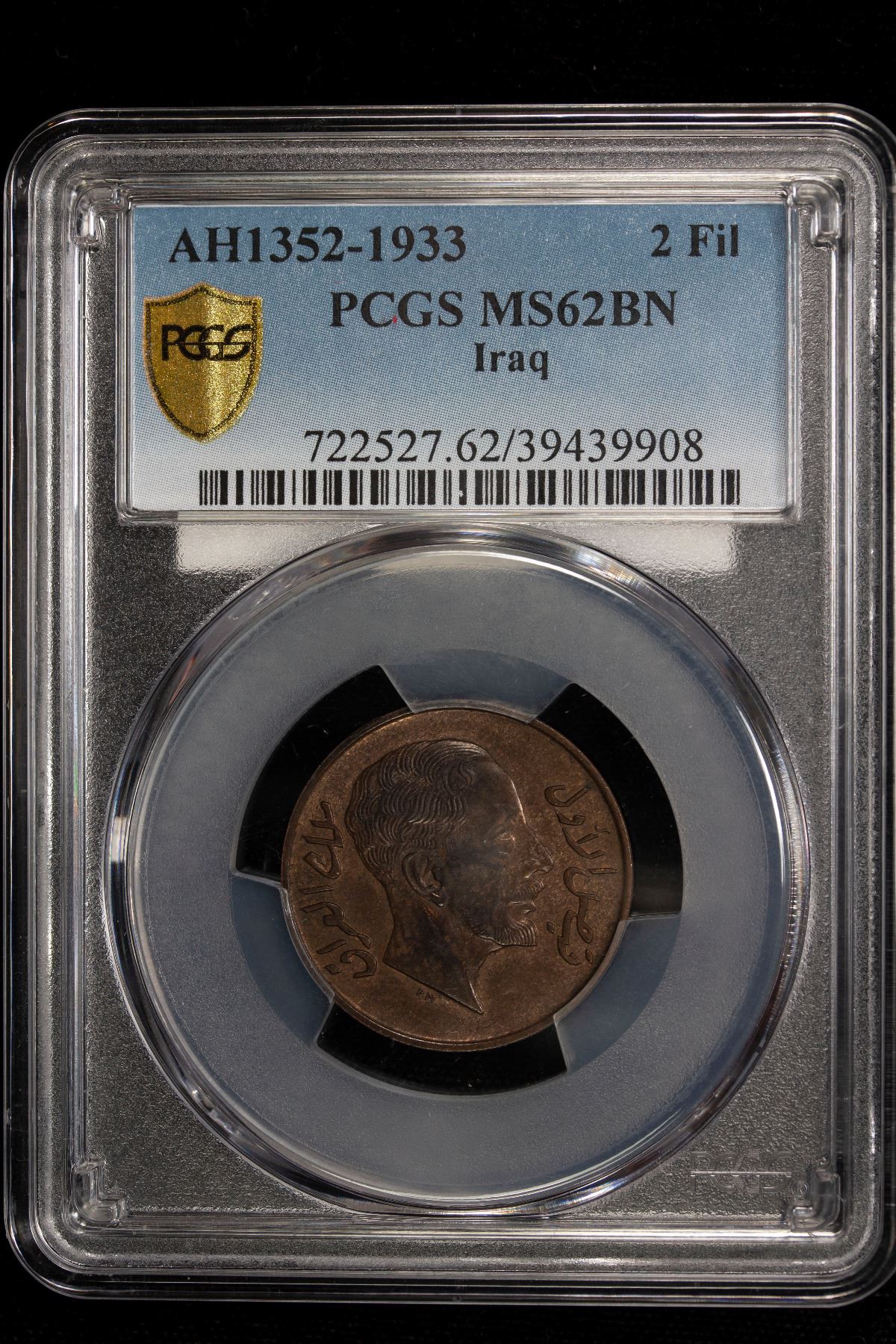 IRAQ: Faisal I, 1921-1933, AE 2 fils, 1933/AH1352, KM-96, PCGS graded MS62 BN.