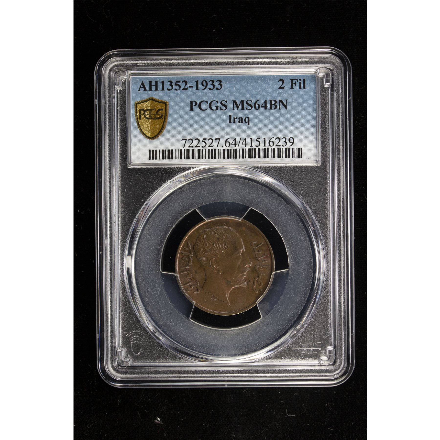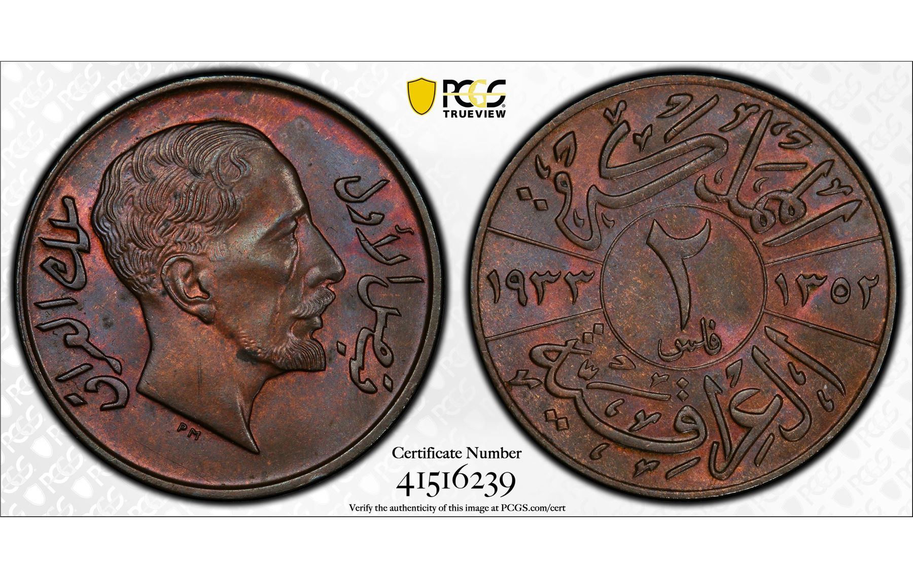 IRAQ: Faisal I, 1921-1933, AE 2 fils, 1933/AH1352, KM-96, a wonderful quality example! PCGS graded MS64 BN.
