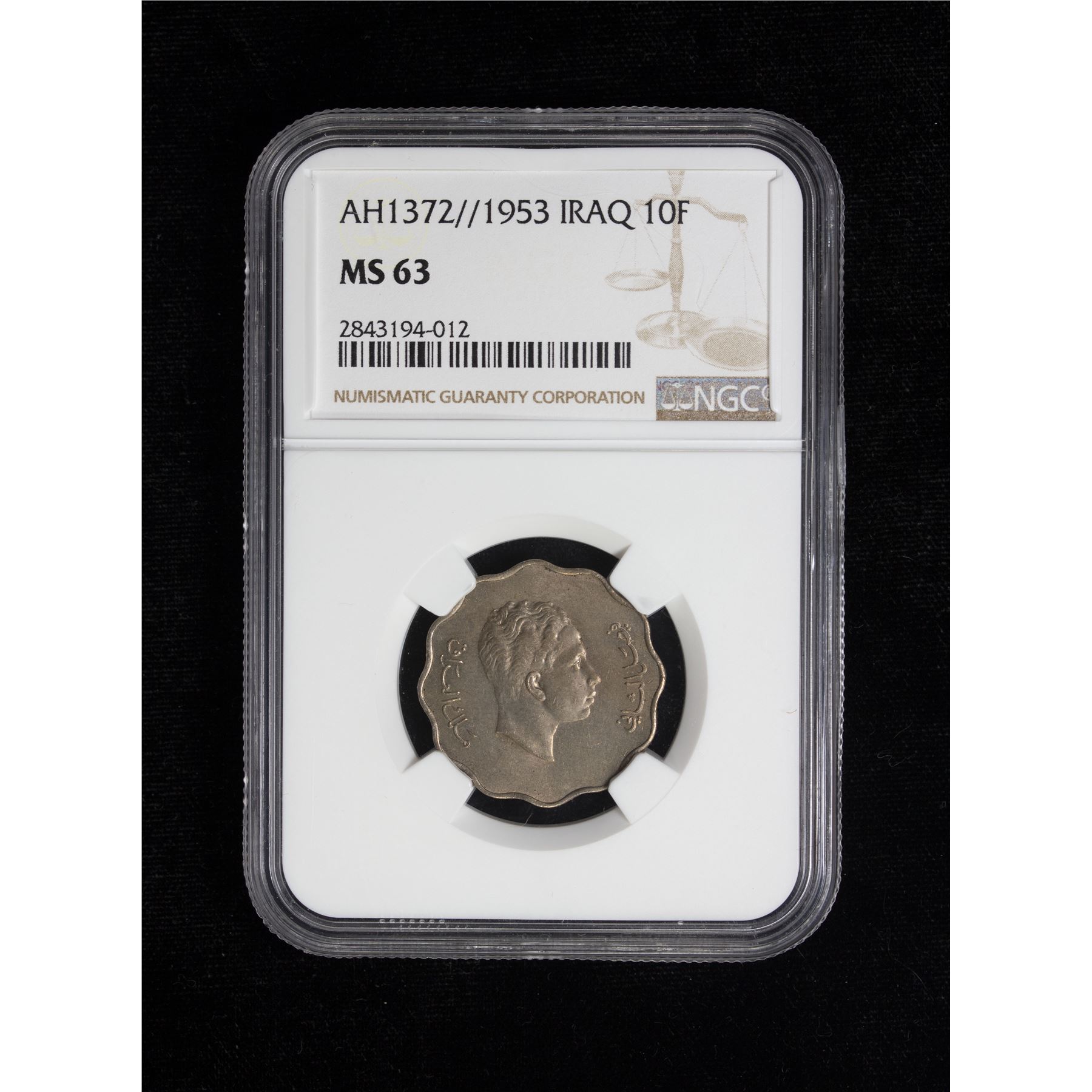 IRAQ: Faisal II, 1939-1958, 10 fils, 1953/AH1372, NGC MS63