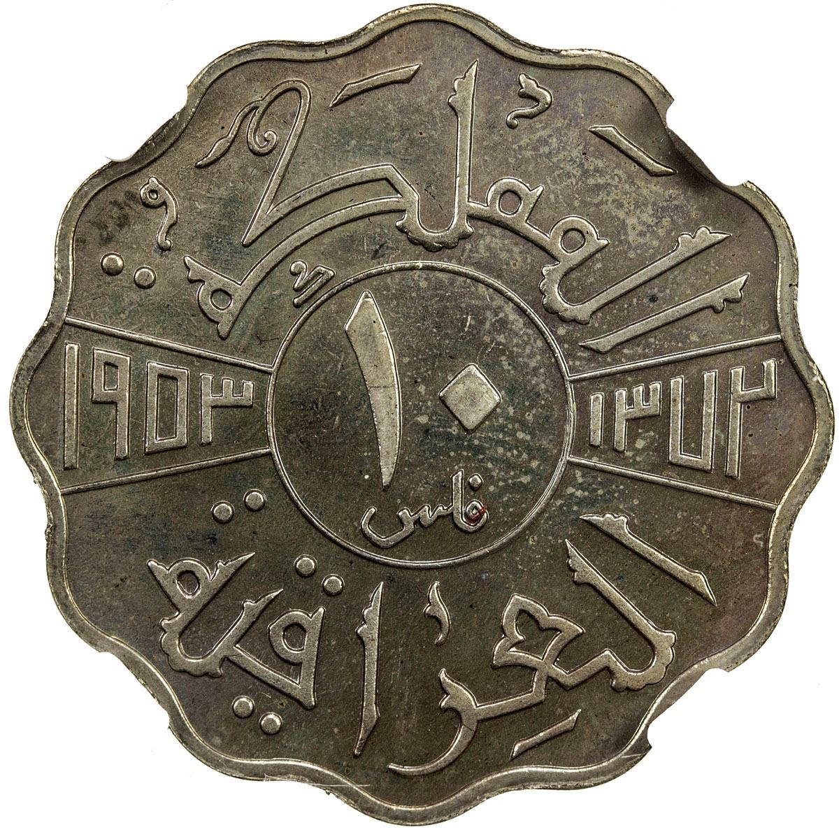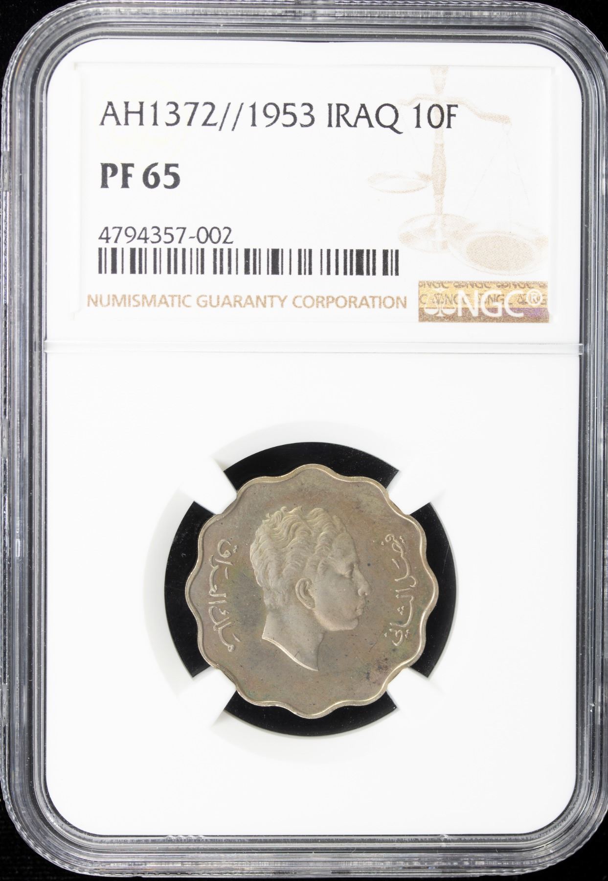 IRAQ: Faisal II, 1939-1958, CN 10 fils, 1953/AH1372, KM-112, one-year type, mintage of only 200 pieces, NGC graded Proof 65, R.
