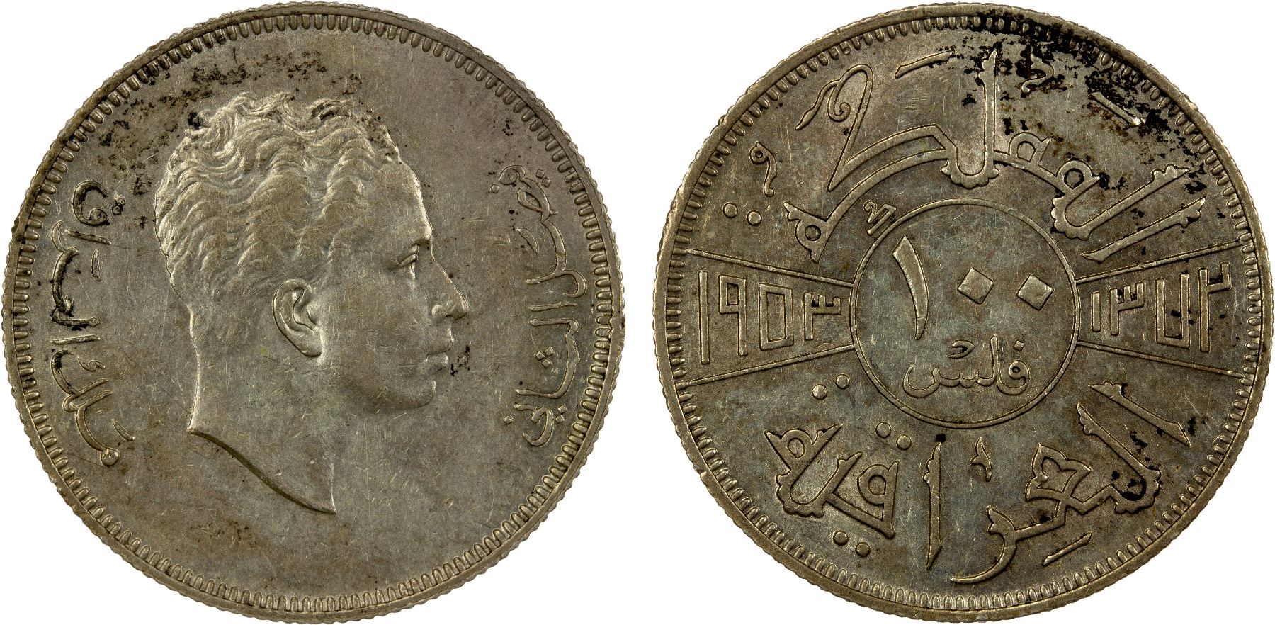 IRAQ: Faisal II, as King, 1953-1958, AR 100 fils, 1953/AH1372, KM-114, one-year type, lightly toned, EF.