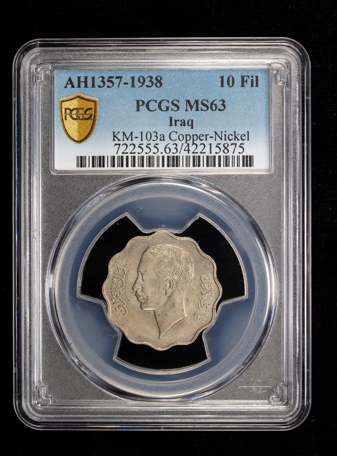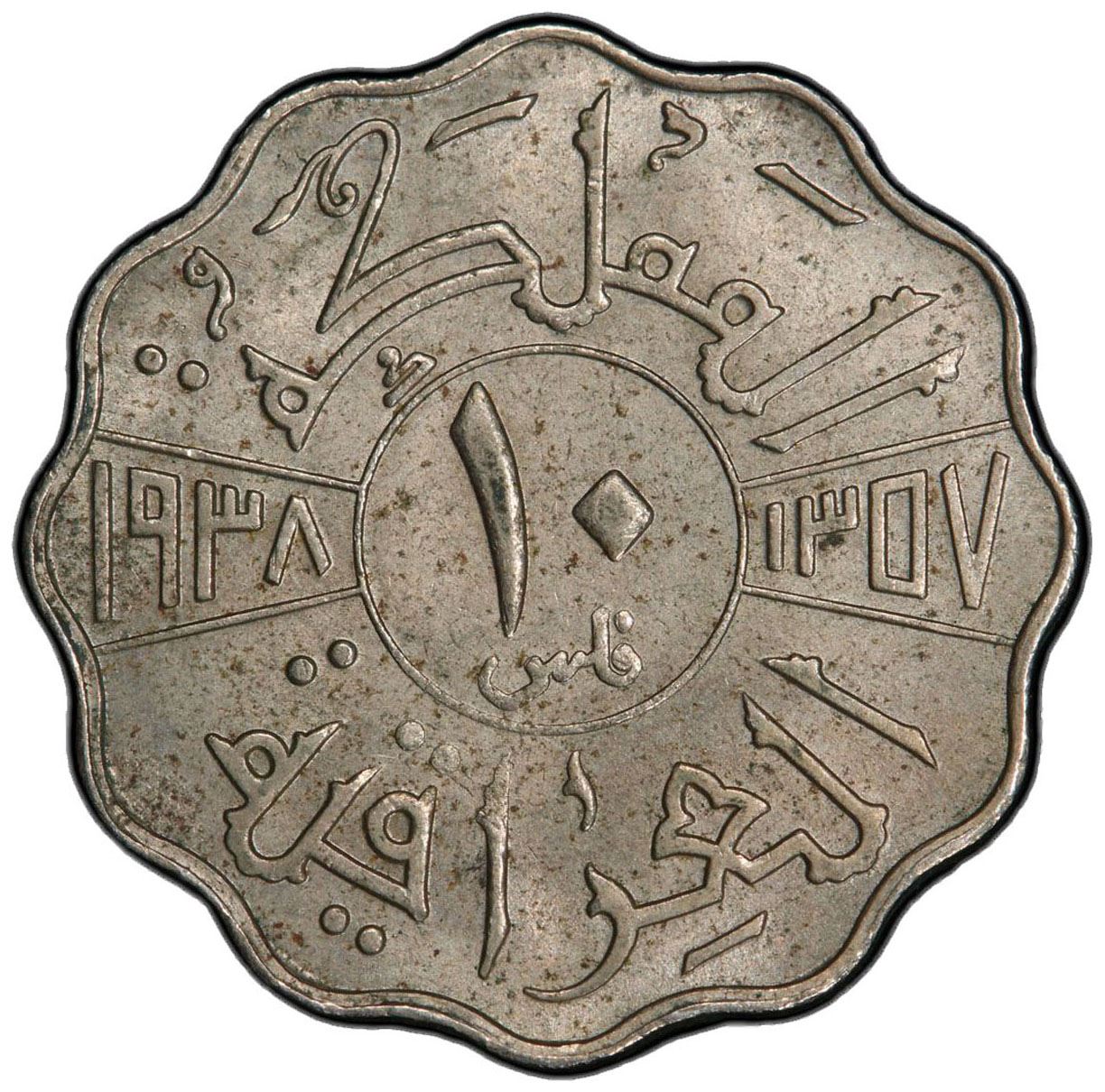 IRAQ: Ghazi I, 1933-1939, 10 fils, 1938/AH1357, KM-103a, a lovely mint state example! PCGS graded MS63.