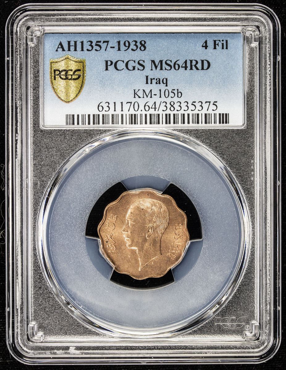 IRAQ: Ghazi I, 1933-1939, AE 4 fils, 1938/AH1357, KM-105b, a superb example! PCGS graded MS64 RD.