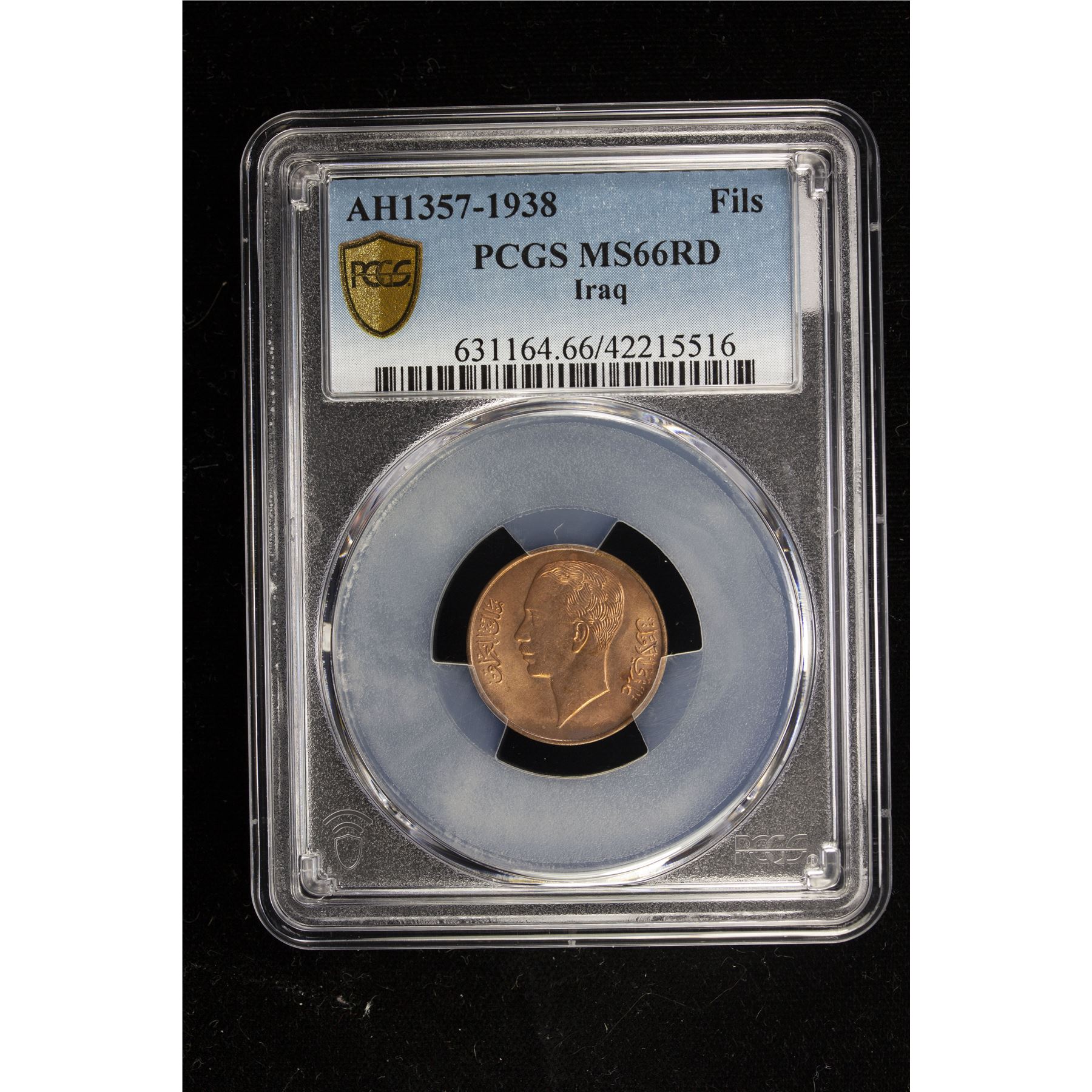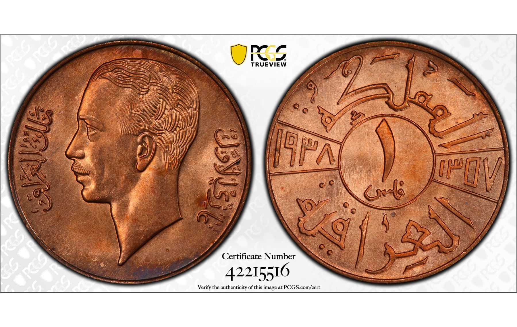 IRAQ: Ghazi I, 1933-1939, AE fils, 1938/AH1357, KM-102, a fantastic red lustrous example! PCGS graded MS66 RD.