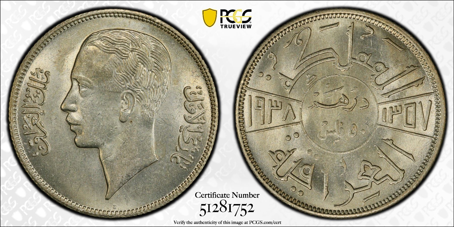 IRAQ: Ghazi I, 1933-1939, AR 50 fils, 1938-I/AH1357, PCGS MS63
