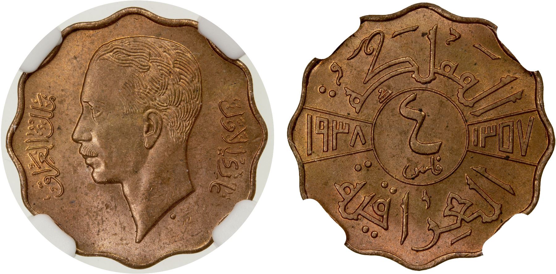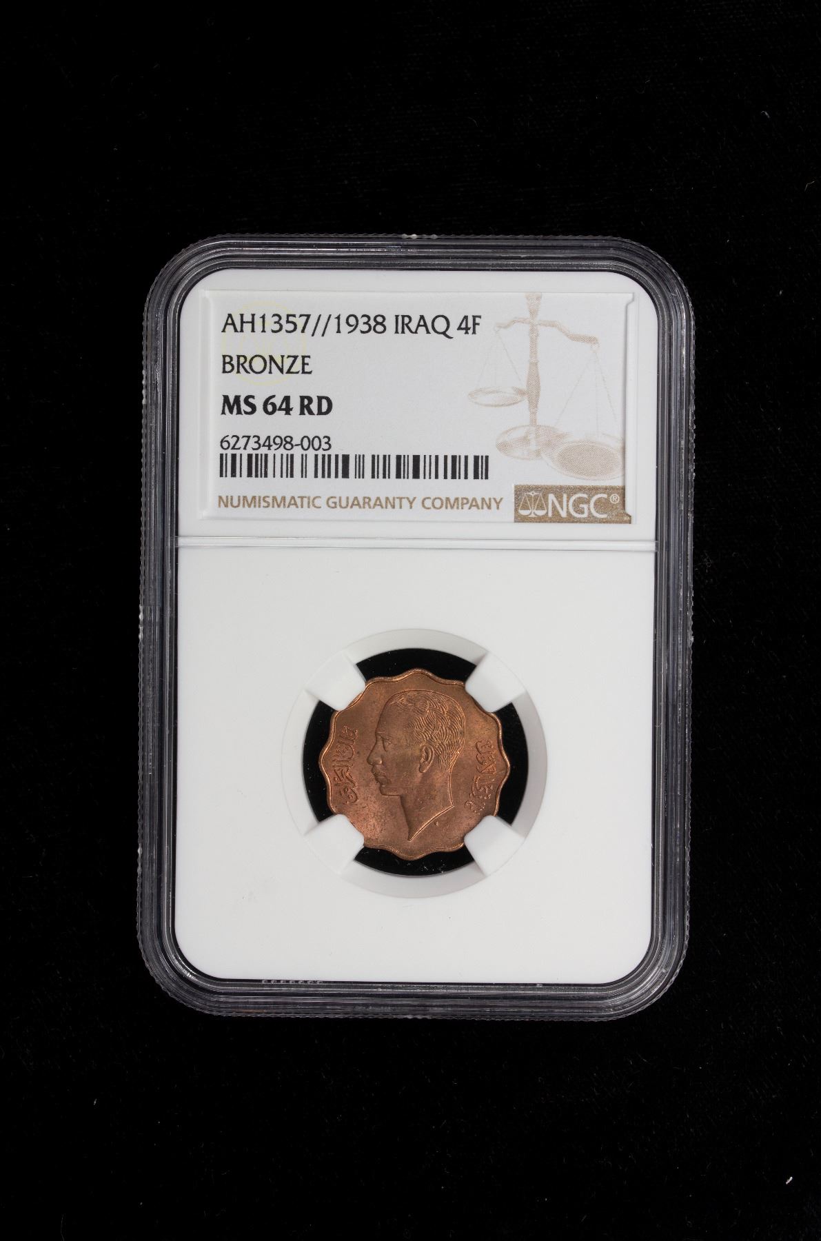 IRAQ: Ghazi I, 1933-1939, bronze 4 fils, 1938/AH1357, NGC graded MS64 RD