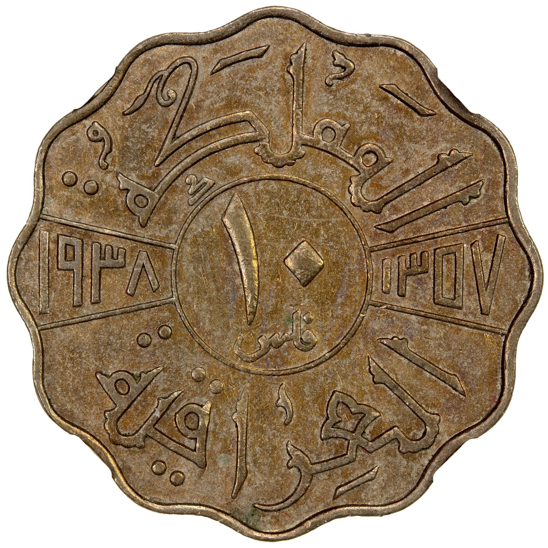 IRAQ: Ghazi I, 1933-1939, copper-nickel 10 fils, 1938/AH1357, NGC AU55
