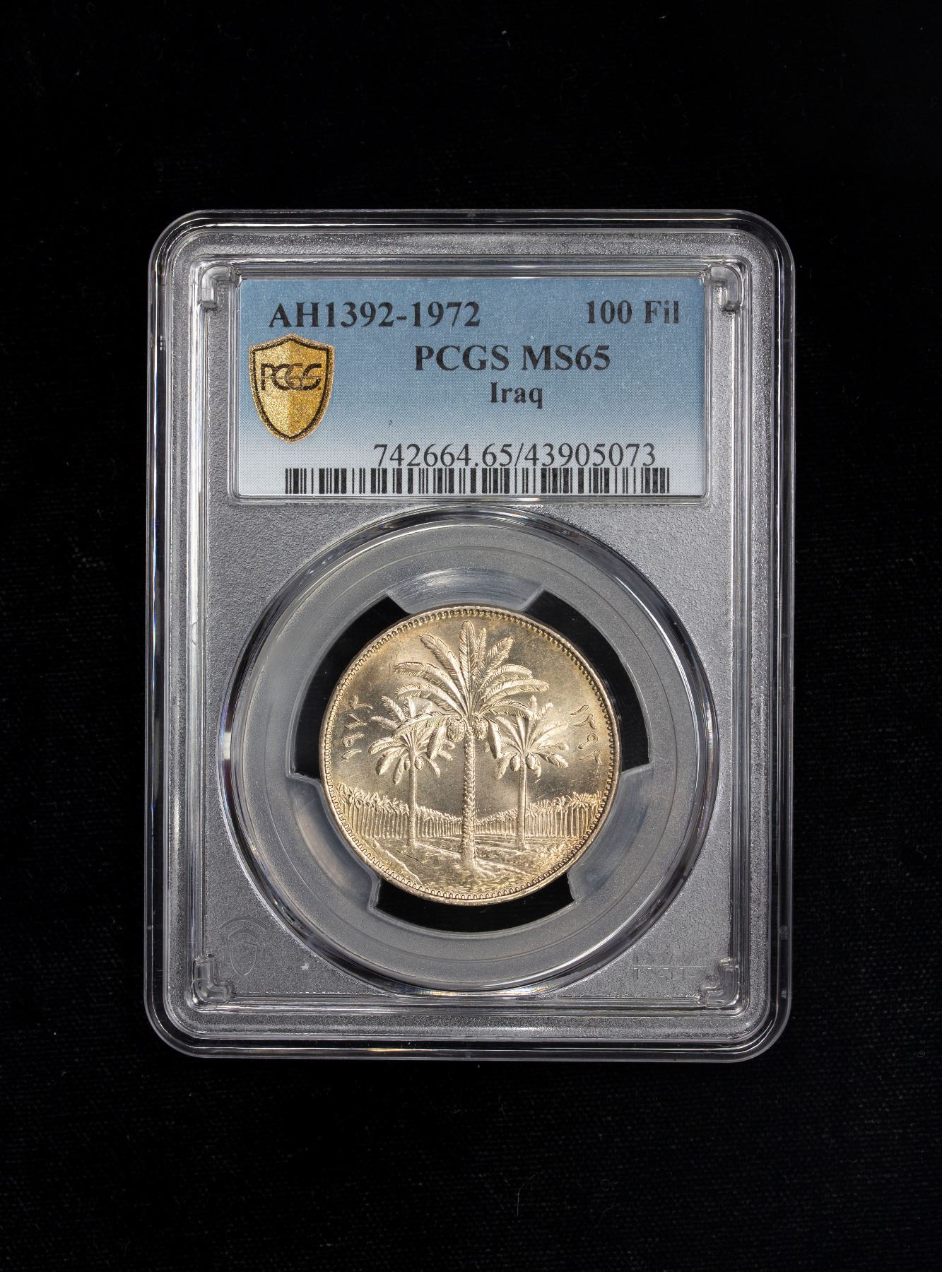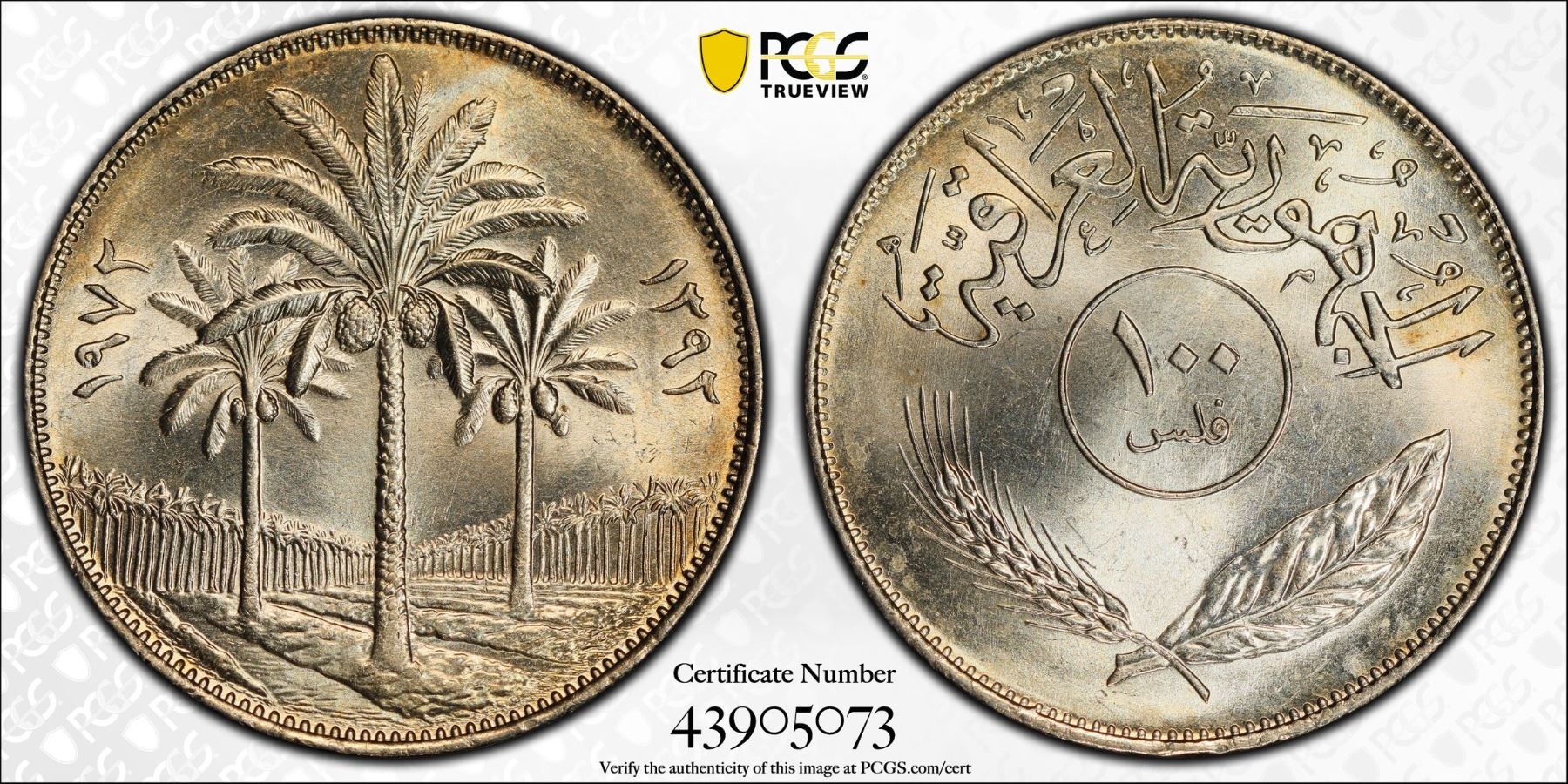 IRAQ: Republic, 100 fils, 1972/AH1392, KM-129, palm trees, a superb quality example! PCGS graded MS65.