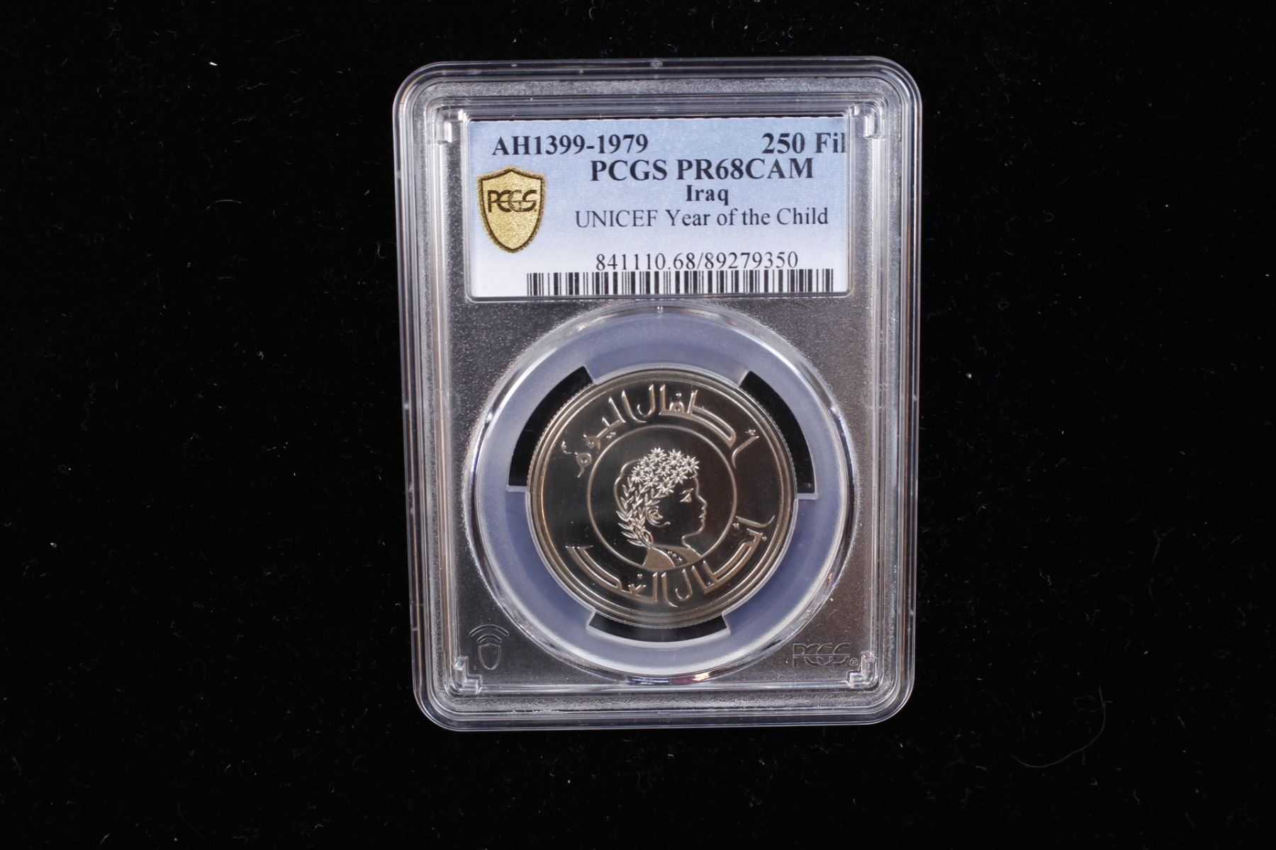IRAQ: Republic, 250 fils, 1979/AH1399, KM-144, International Year of the Child, mintage of only 10,000 pieces, PCGS graded Proof 68 Cameo.
