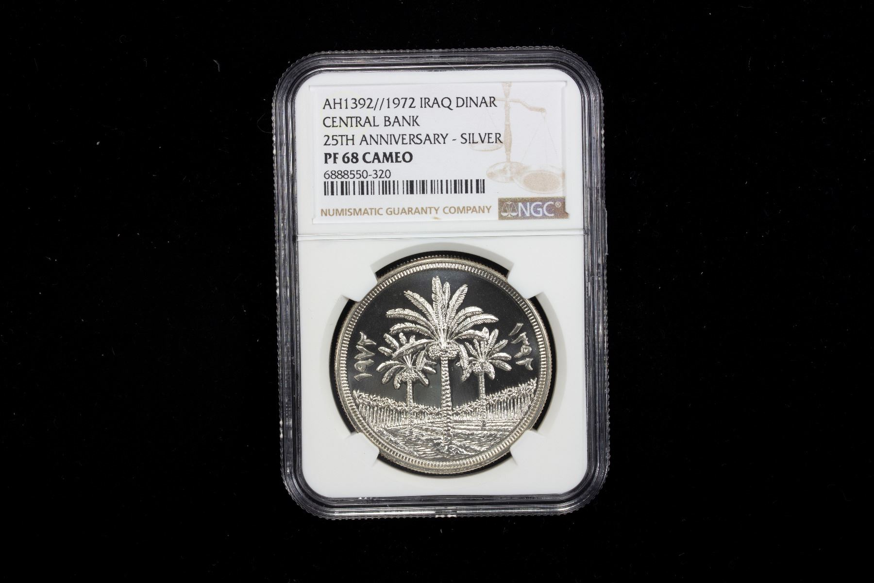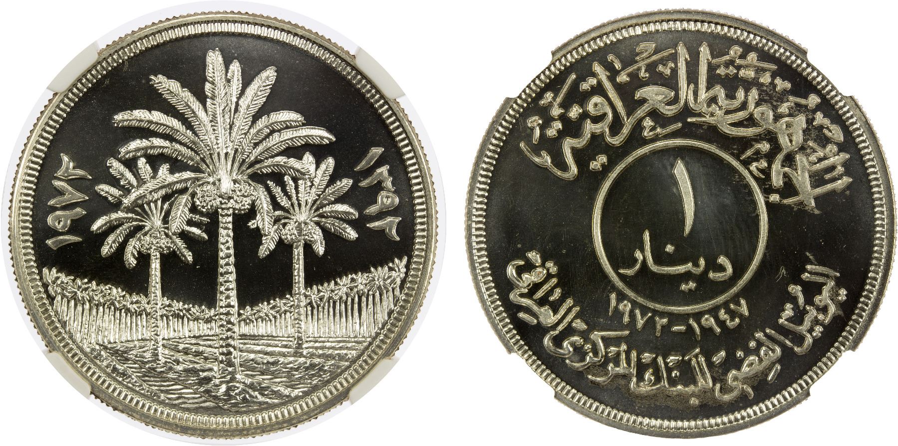 IRAQ: Republic, AR Dinar, 1972, KM-137, 25th Anniversary of the Central Bank of Iraq issue, a spectacular example, NGC graded PF68 Cameo.