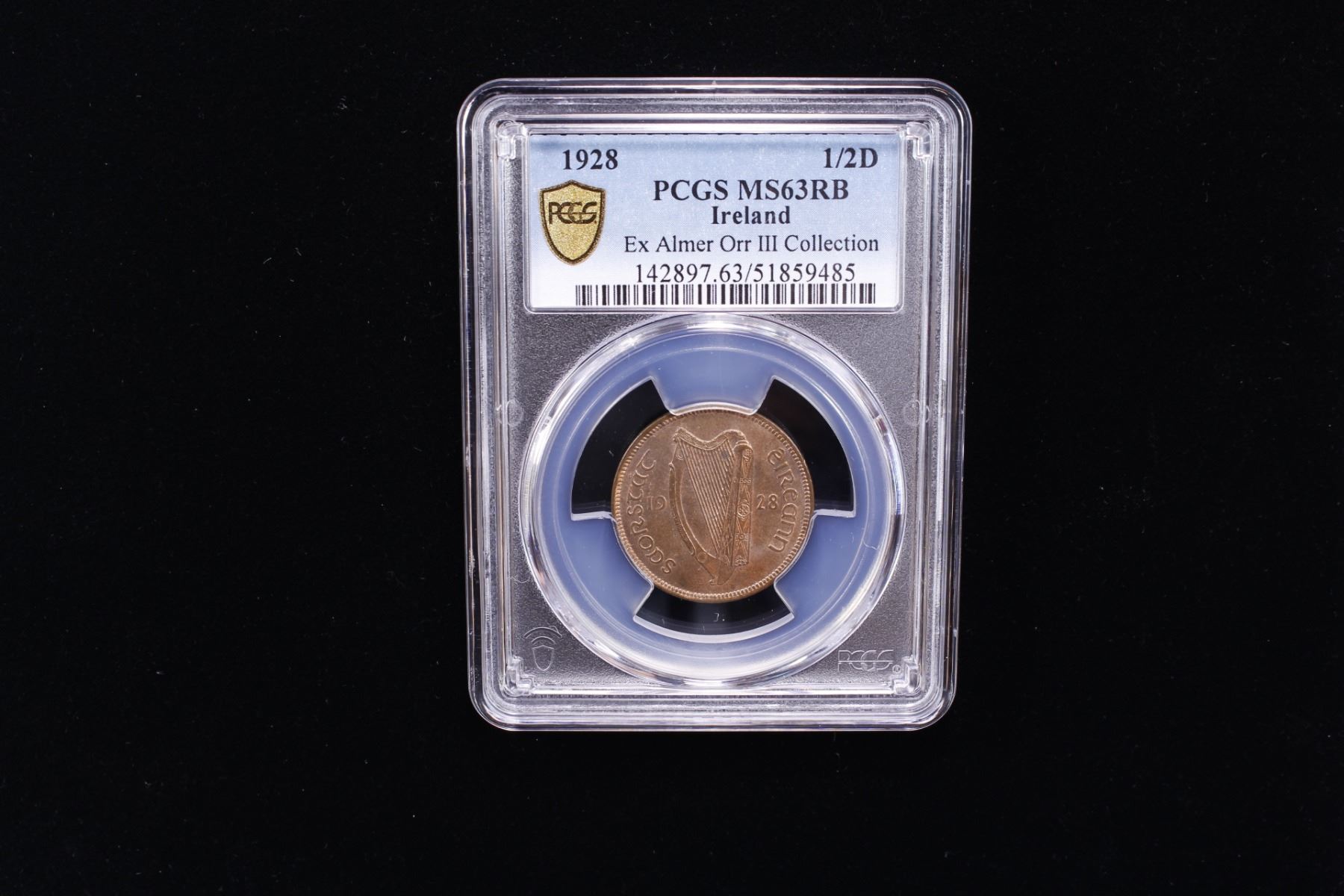IRELAND: Irish Free State, AE 1/2 penny, 1928, KM-2, a lovely example, PCGS graded MS63 RB, ex Almer H. Orr III Collection.