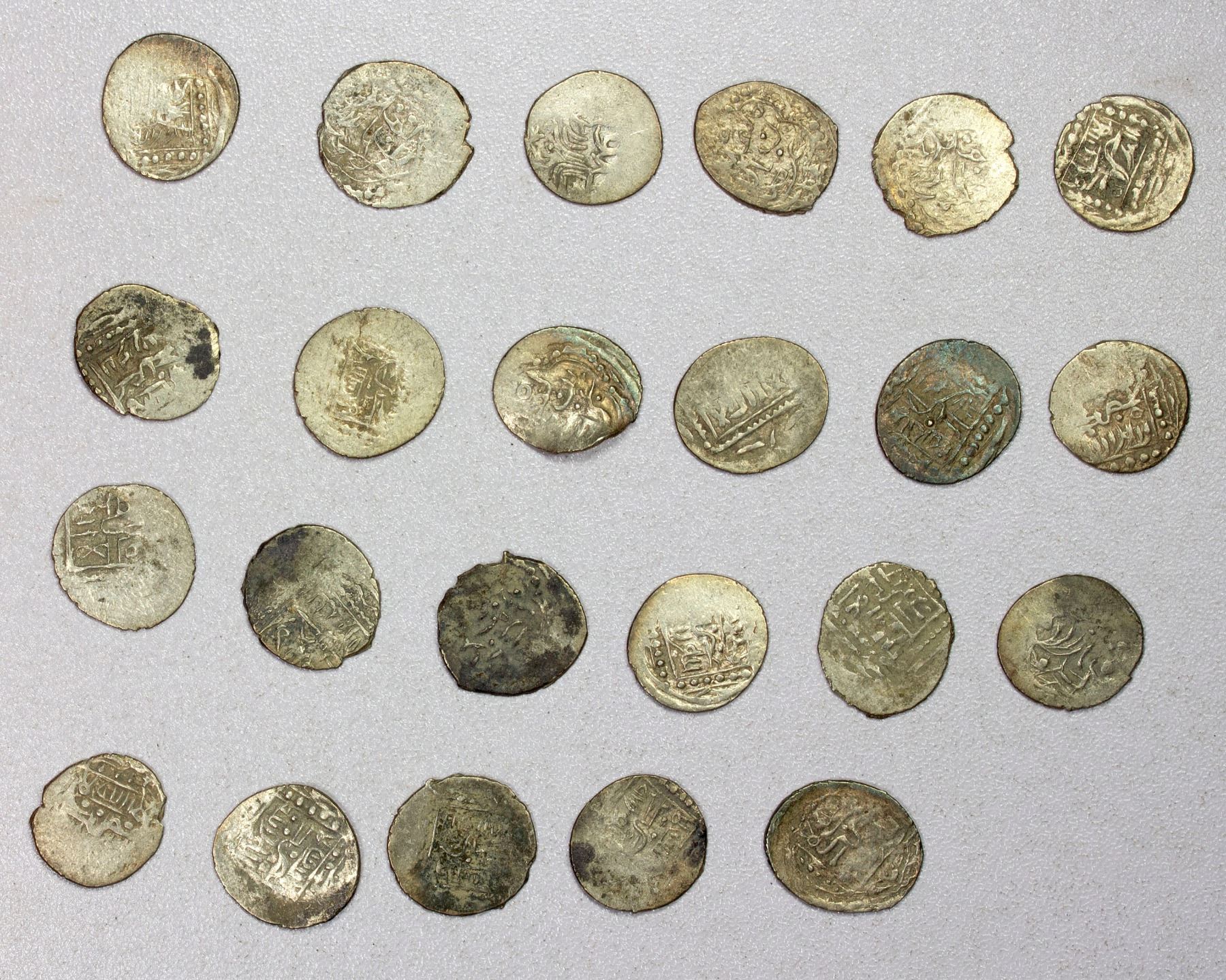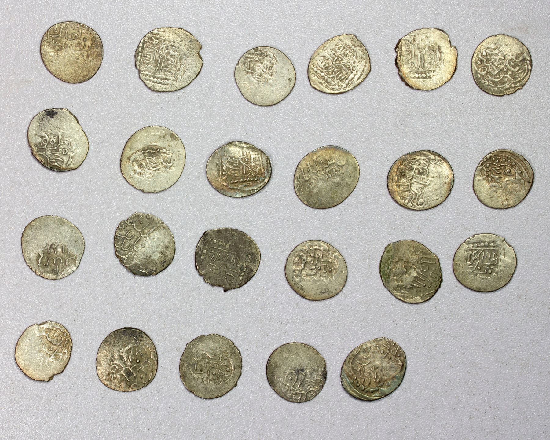 ISFENDIYARID (Candaroglulari): LOT of 23 silver akçes, issues of Isfendiyar (1392-1439), type A-1286.4 (quatrefoil or hexafoil, sometimes even pentafoil // square), various examples, almost all VF or better but weakly struck; retail value $325, lot of 23 pieces.