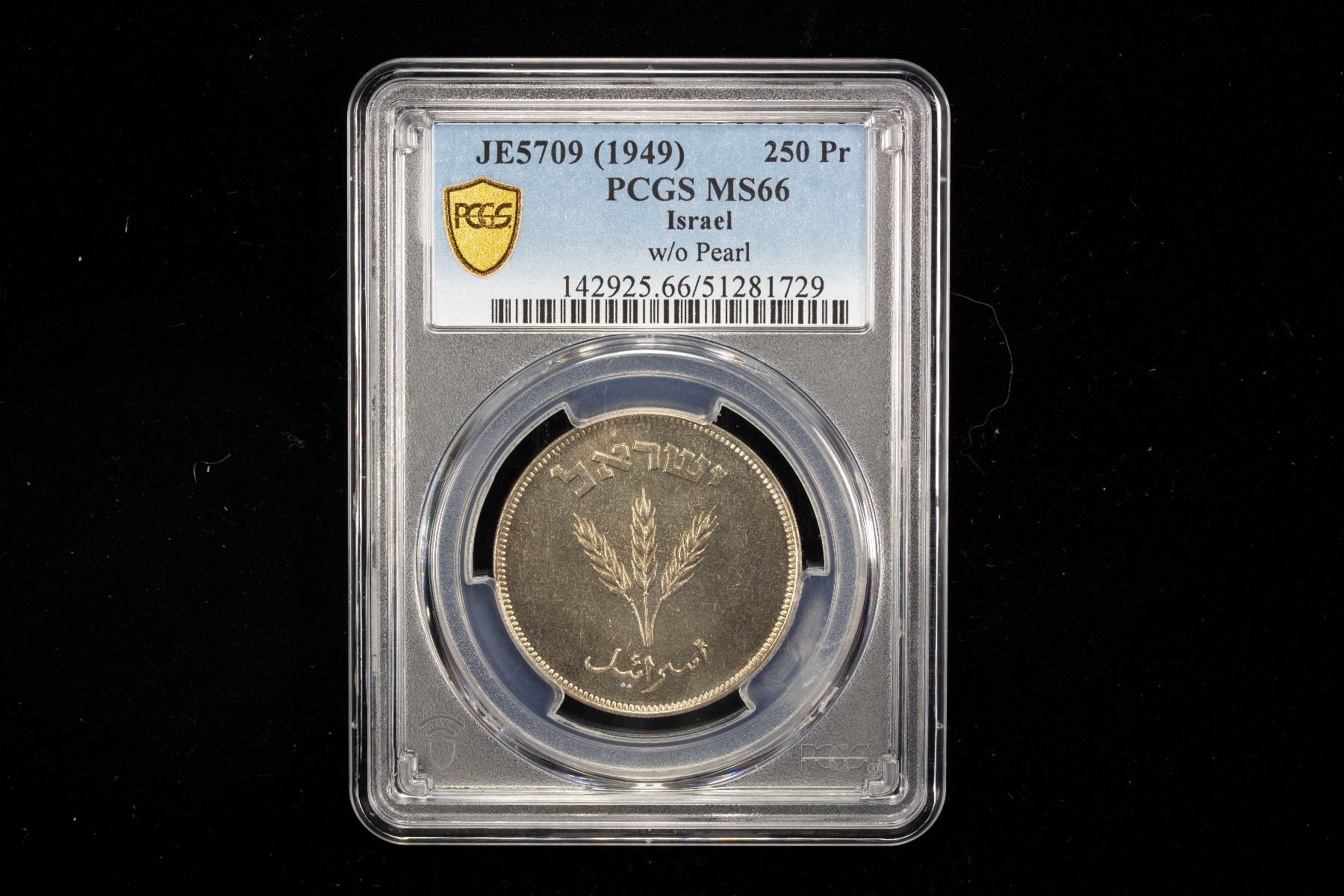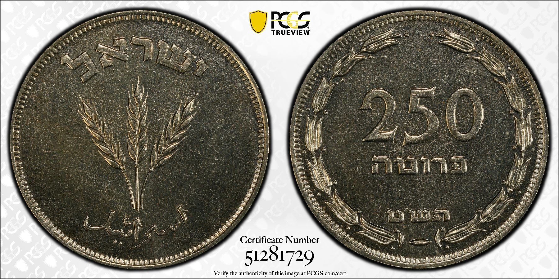 ISRAEL: Republic, 250 prutah, JE5709 (1949), KM-15, without pearl variety, struck at the Heaton mint, Birmingham, PCGS graded MS66