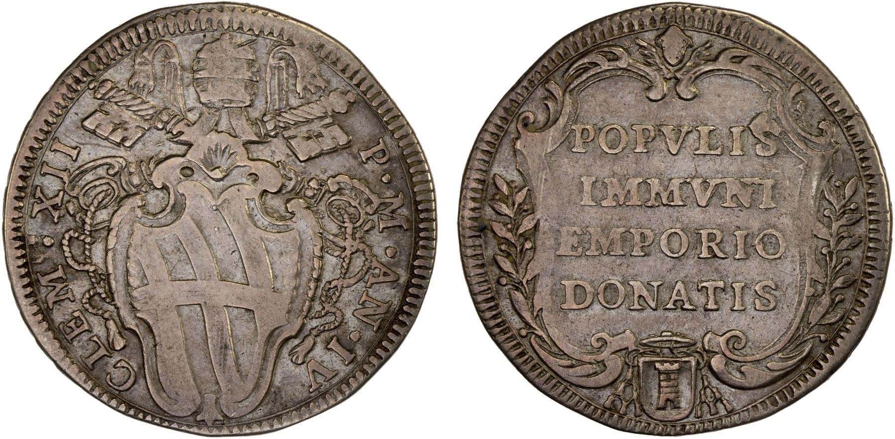 ITALY: PAPAL STATES: Clement XII, 1730-1740, AR testone, year 4 (1733), VF-XF