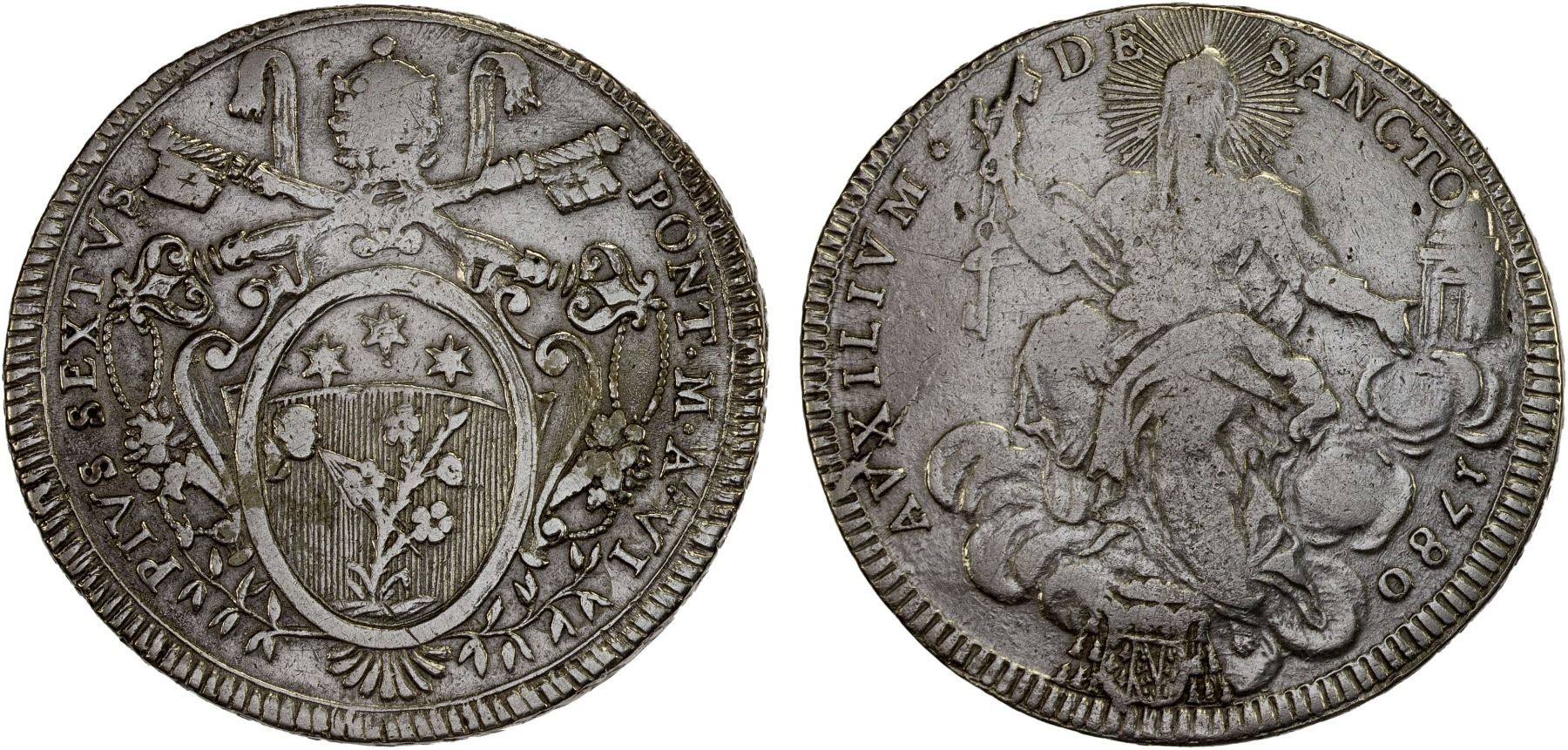 ITALY: PAPAL STATES: Pio VI, 1775-1799, AR 5 scudo, Rome, 1780, Fine