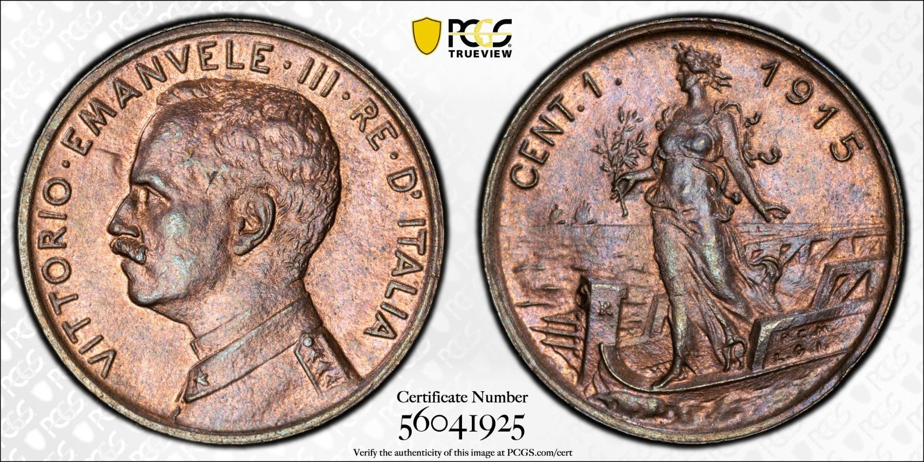 ITALY: Vittorio Emanuele III, 1900-1946, AE centesimo, 1915-R, PCGS MS64 RB