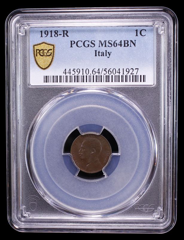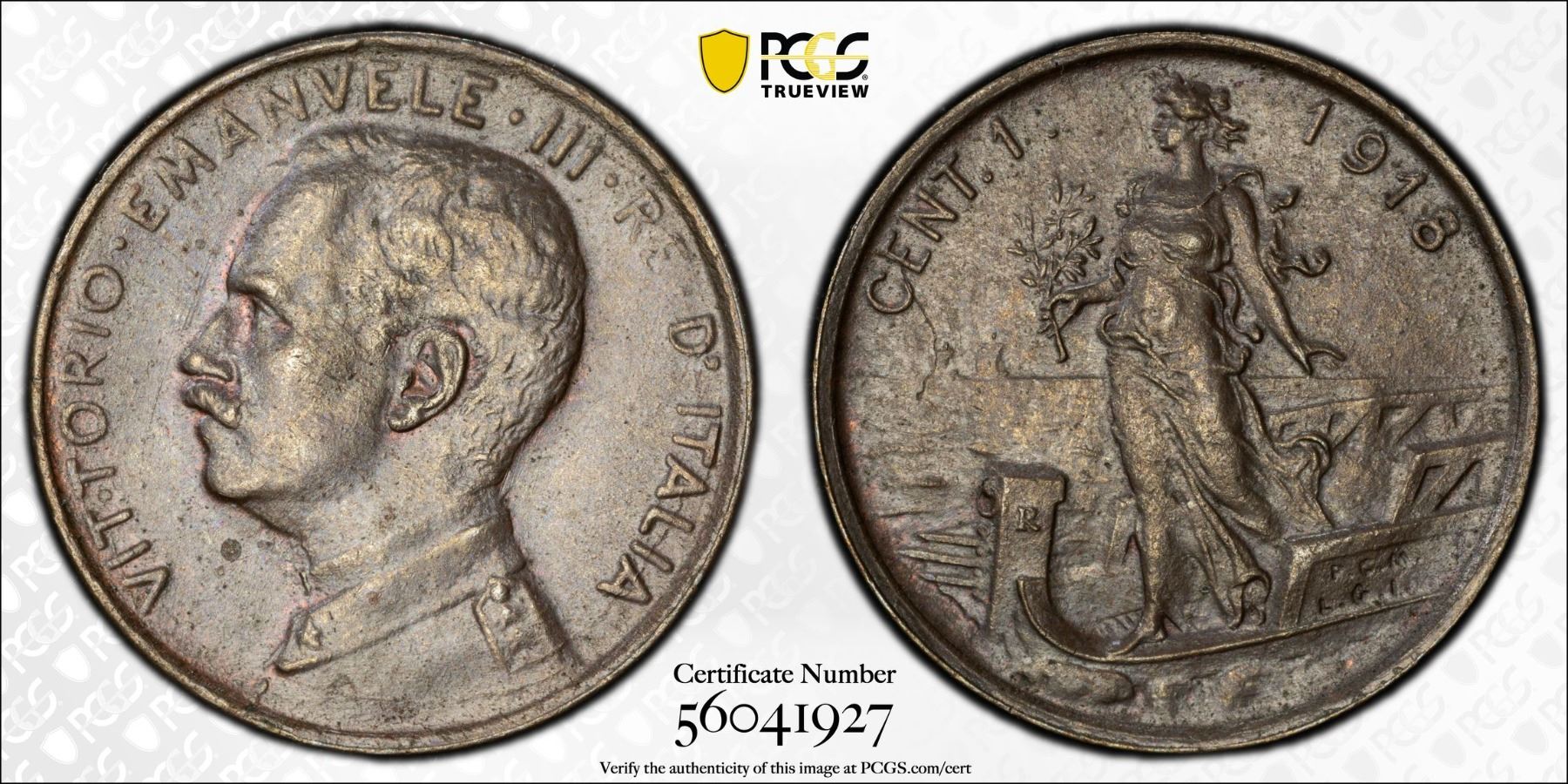ITALY: Vittorio Emanuele III, 1900-1946, AE centesimo, 1918-R, PCGS MS64 BN