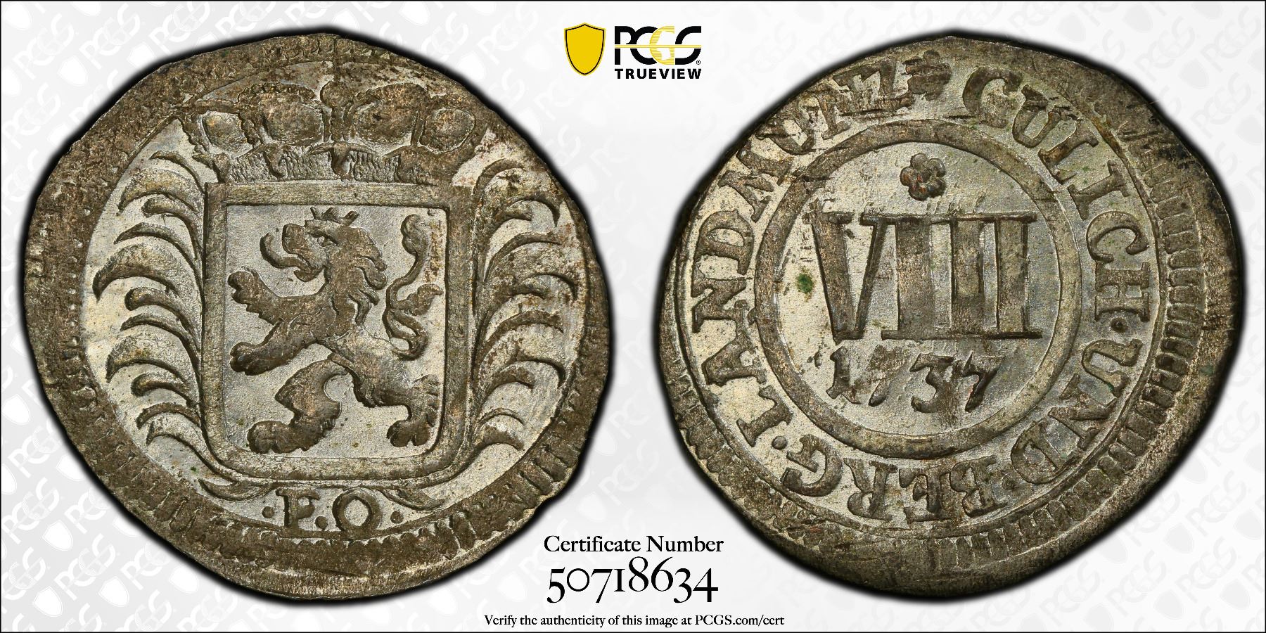 JÜLICH-BERG: Karl Philipp, 1716-1742, BI 8 heller, 1737, PCGS MS65