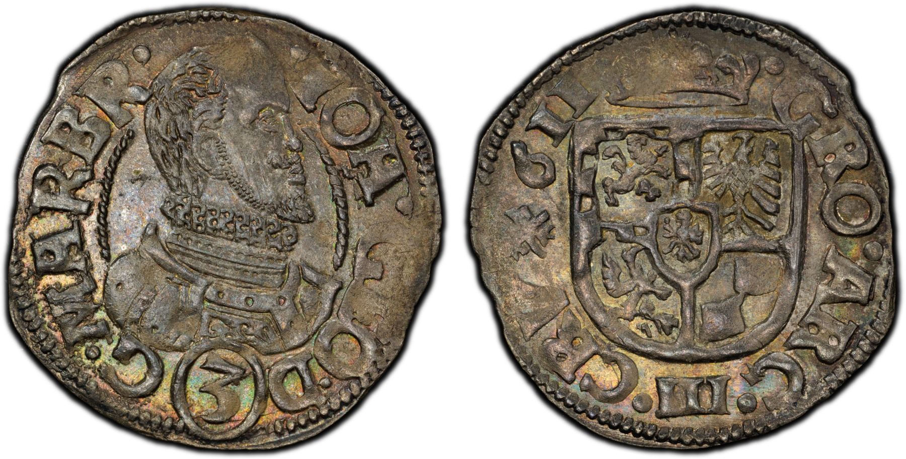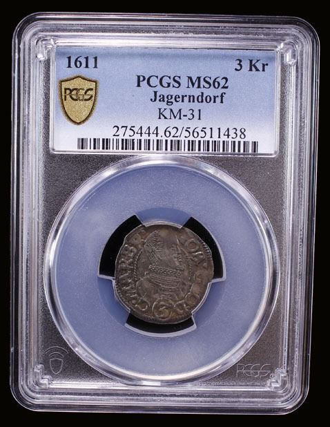 JAGERNDORF: Johann Georg von Brandenburg-Ansbach, 1607-1623, AR 3 kreuzer (groschen), 1611, KM-31, nicely toned, PCGS graded MS62.