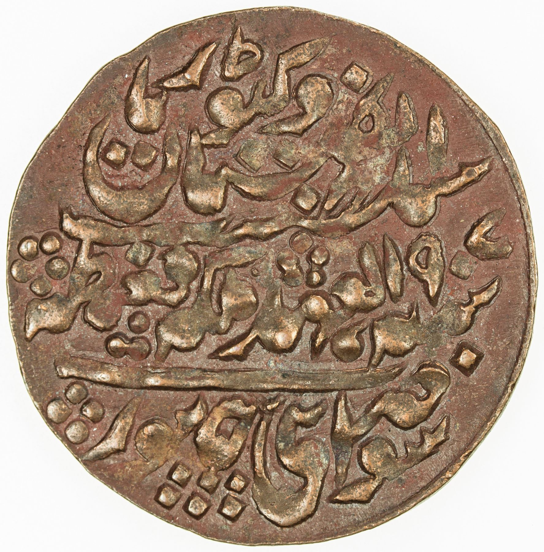 JAIPUR: Madho Singh II, 1880-1922, AE nazarana paisa (6.40g), Sawai Jaipur, 1907 year 28, KM-132, EF-AU, ex Paul Stevens Collection.
