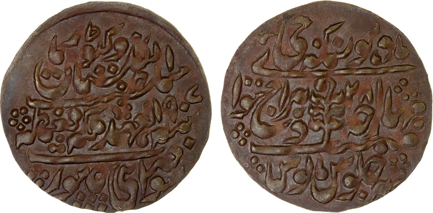 JAIPUR: Madho Singh II, 1880-1922, AE nazarana paisa (6.42g), 1907 year 28, KM-132, also citing Queen Victoria, Unc, ex Ian Todd Collection.