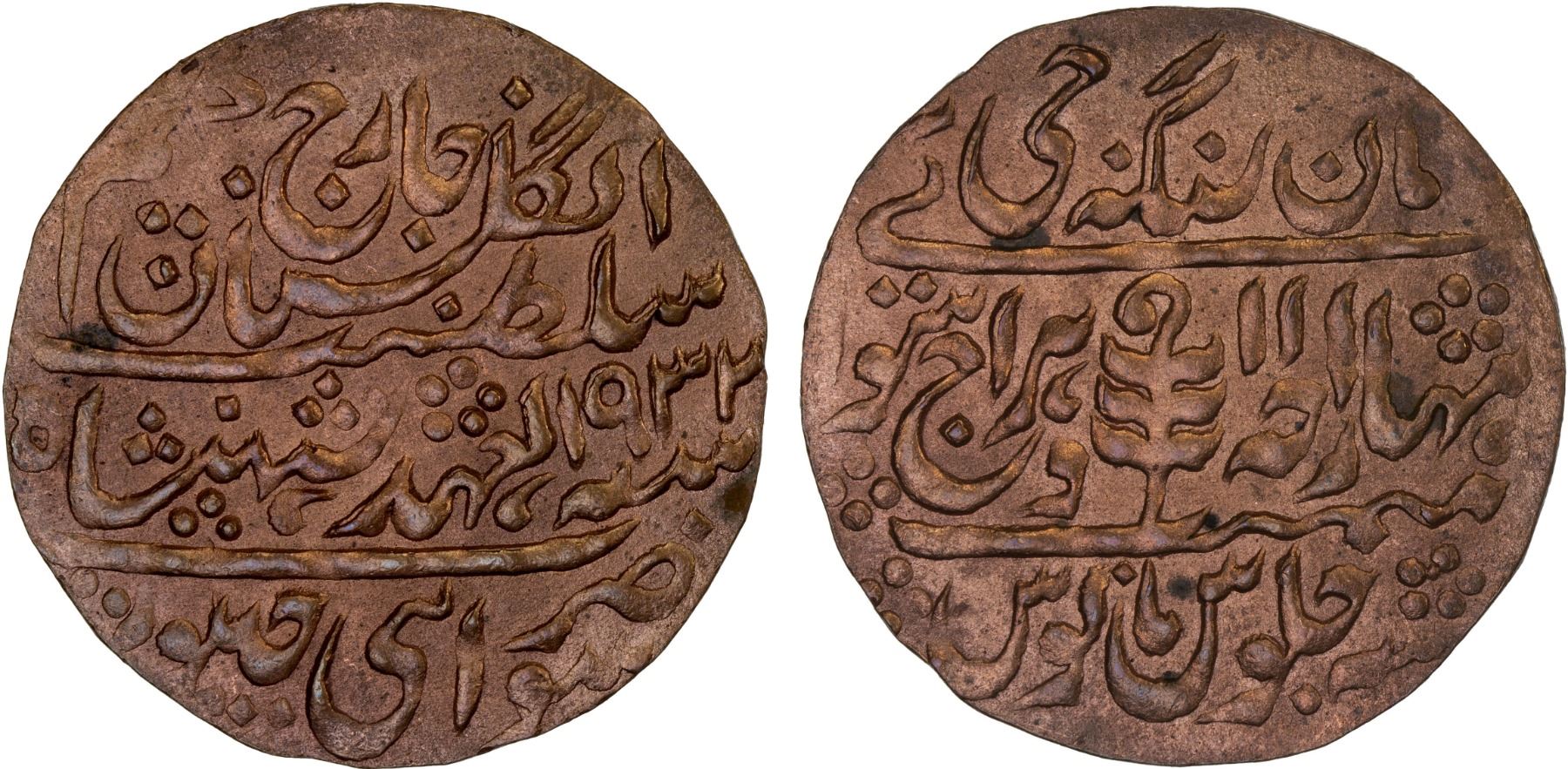 JAIPUR: Man Singh II, 1922-1949, AE nazarana paisa (6.32g), Sawai Jaipur, 1932 year 11, KM-155, also citing George V, lovely bold strike, Unc, ex Ian Todd Collection.