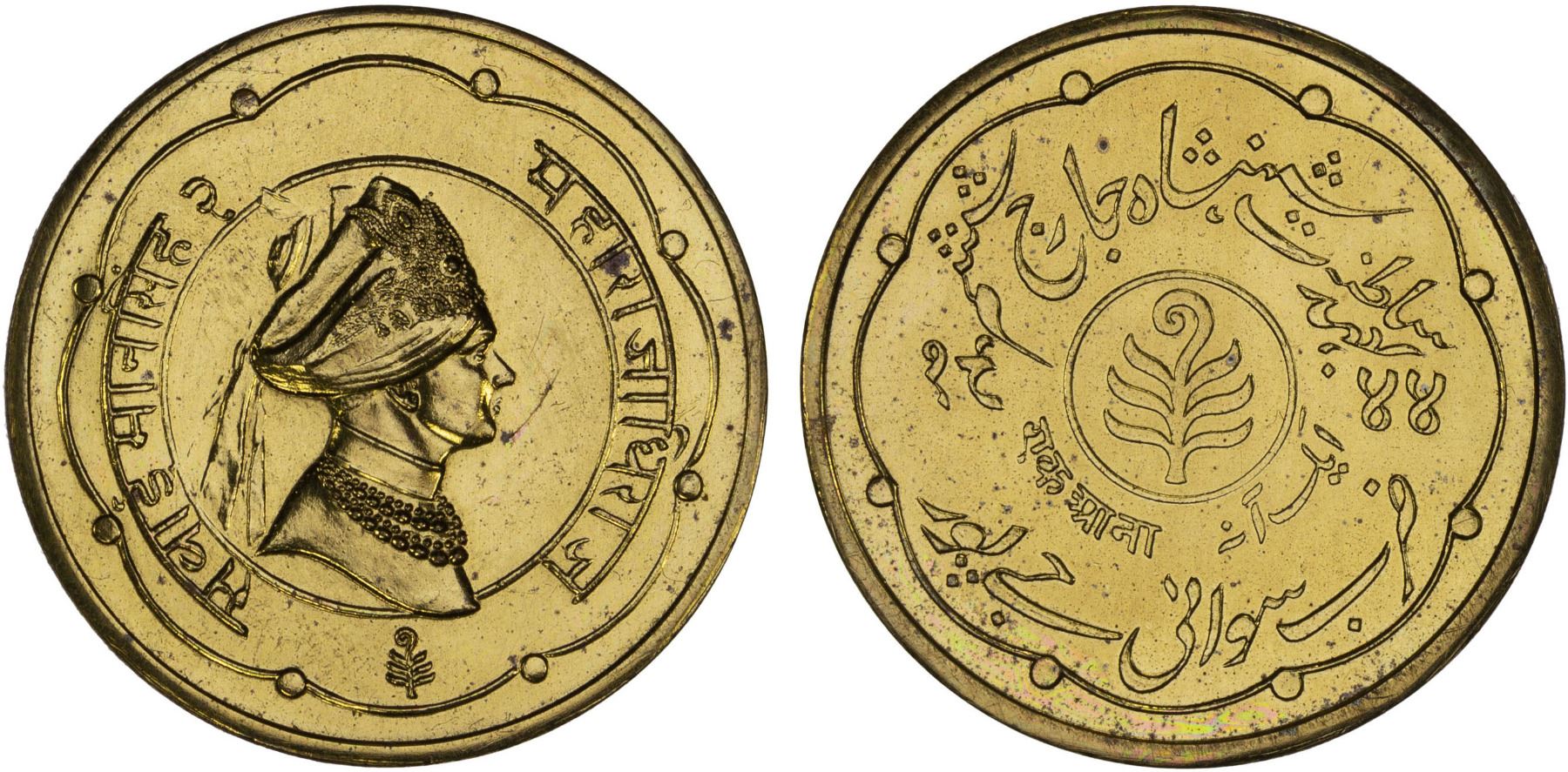 JAIPUR: Man Singh II, 1922-1949, anna (3.00g), Sawai Jaipur, 1944, KM-187, also citing George VI; proof restrike, Proof, RR, ex Ian Todd Collection.