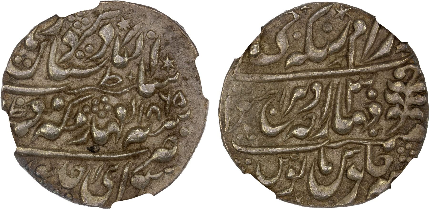JAIPUR: Ram Singh, 1835-1880, AR nazarana rupee, Sawai Jaipur, 1865 year 30, KM-120, also in the name of Queen Victoria, NGC graded AU55