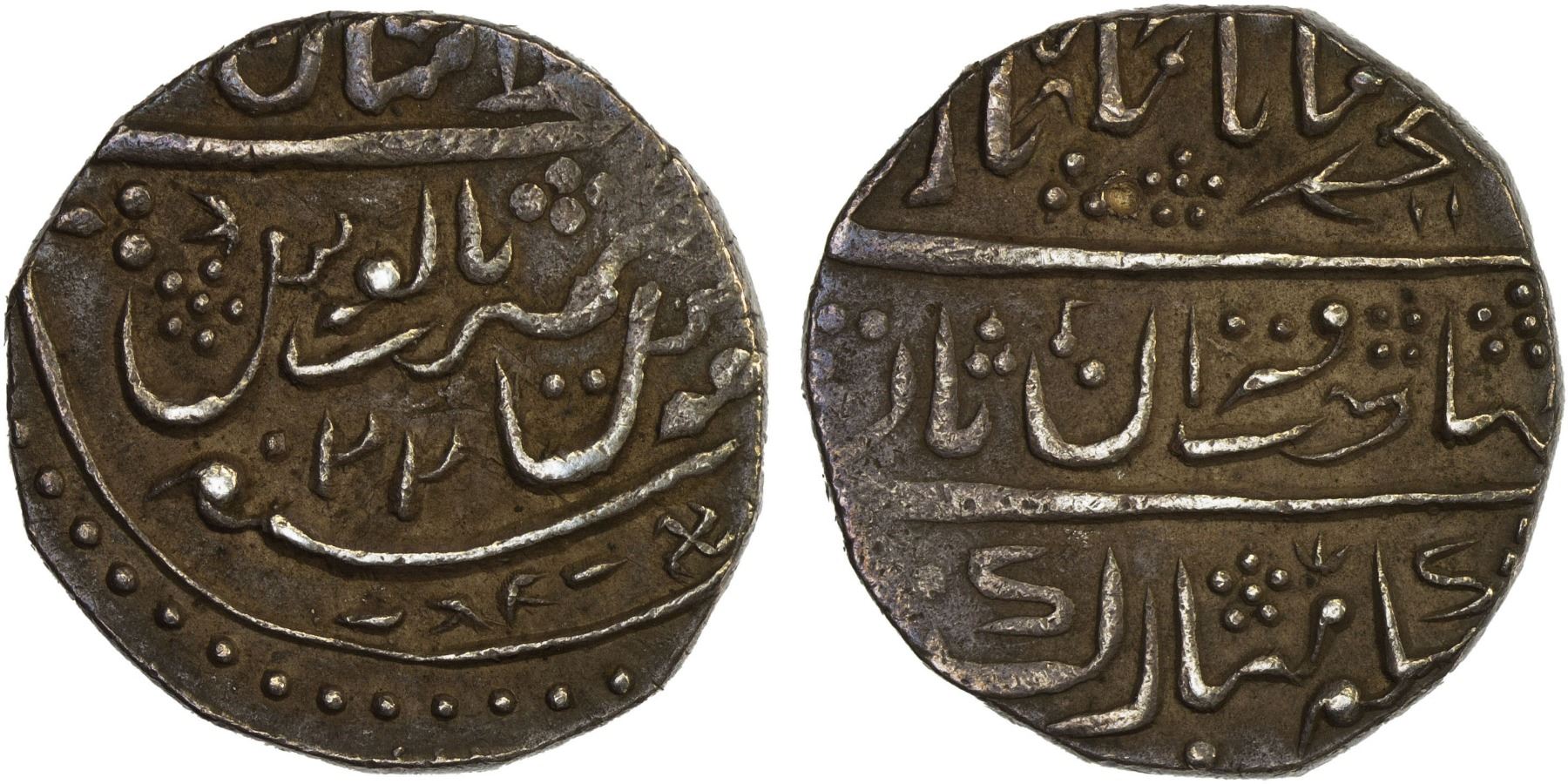 JAISALMIR: Anonymous, AR rupee, AH1150 year 22 (frozen), KM-10.1, struck ca. 1756-1860AD, with Gujarati "i", in the name of Mughal emperor Muhammad Shah, XF.
