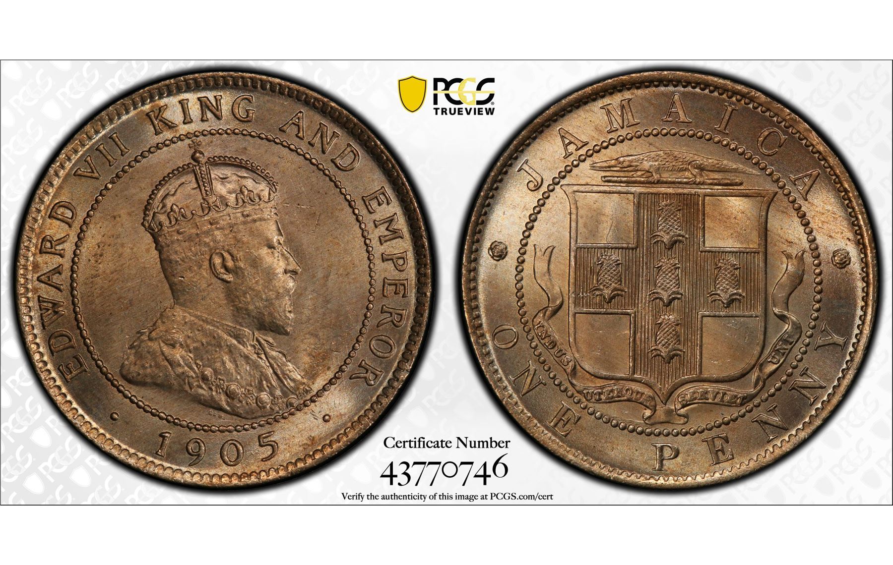 JAMAICA: Edward VII, 1901-1910, 1 penny, 1905, PCGS MS64