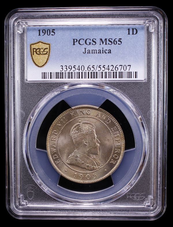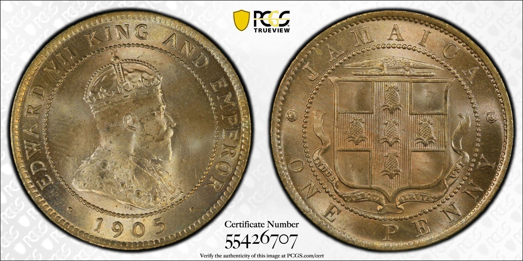 JAMAICA: Edward VII, 1901-1910, 1 penny, 1905, KM-23, Y-9, a superb example, PCGS graded MS65.