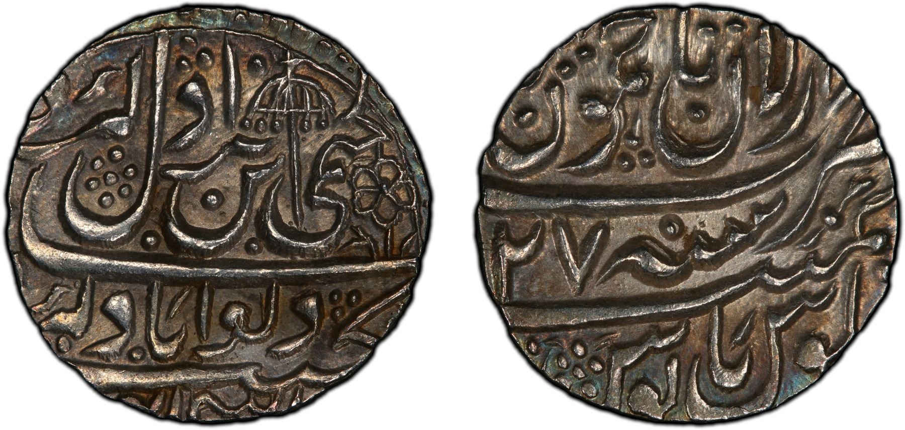 JAMMU: Shah Alam II, 1753-1806, AR rupee, VS1841 year 27, KM-10.1, bold strike, lightly toned, two-year type, PCGS graded MS63.