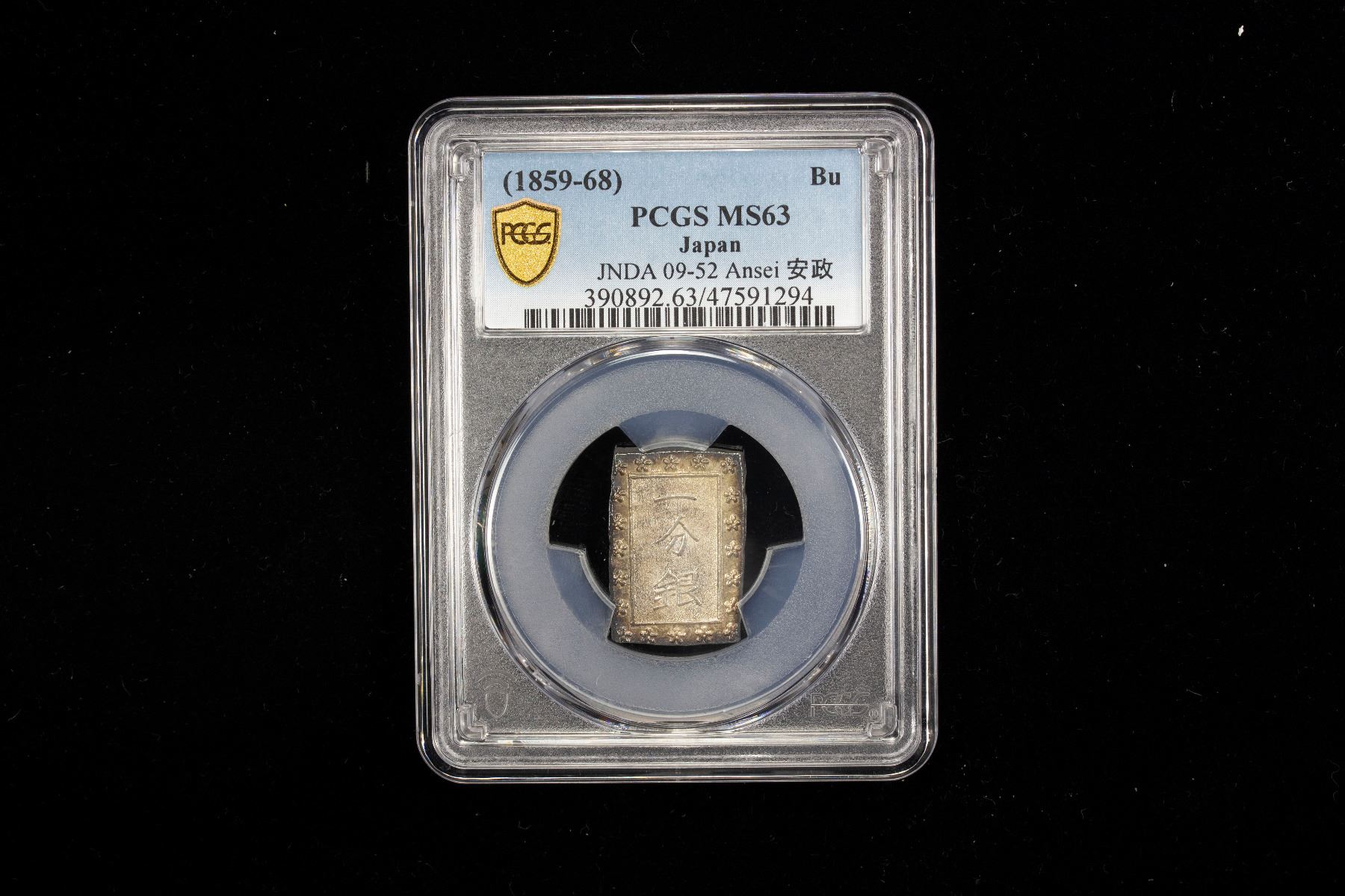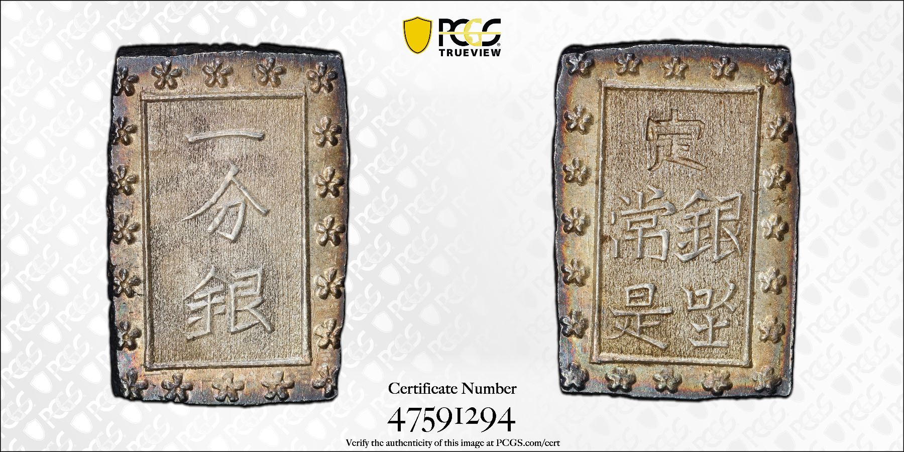 JAPAN: Ansei, 1854-1860, AR bu (8.77g), H-9.82, JNDA-09-52, ichi bu gin, struck 1859-68, lightly toned, a lovely mint state example! PCGS graded MS63.
