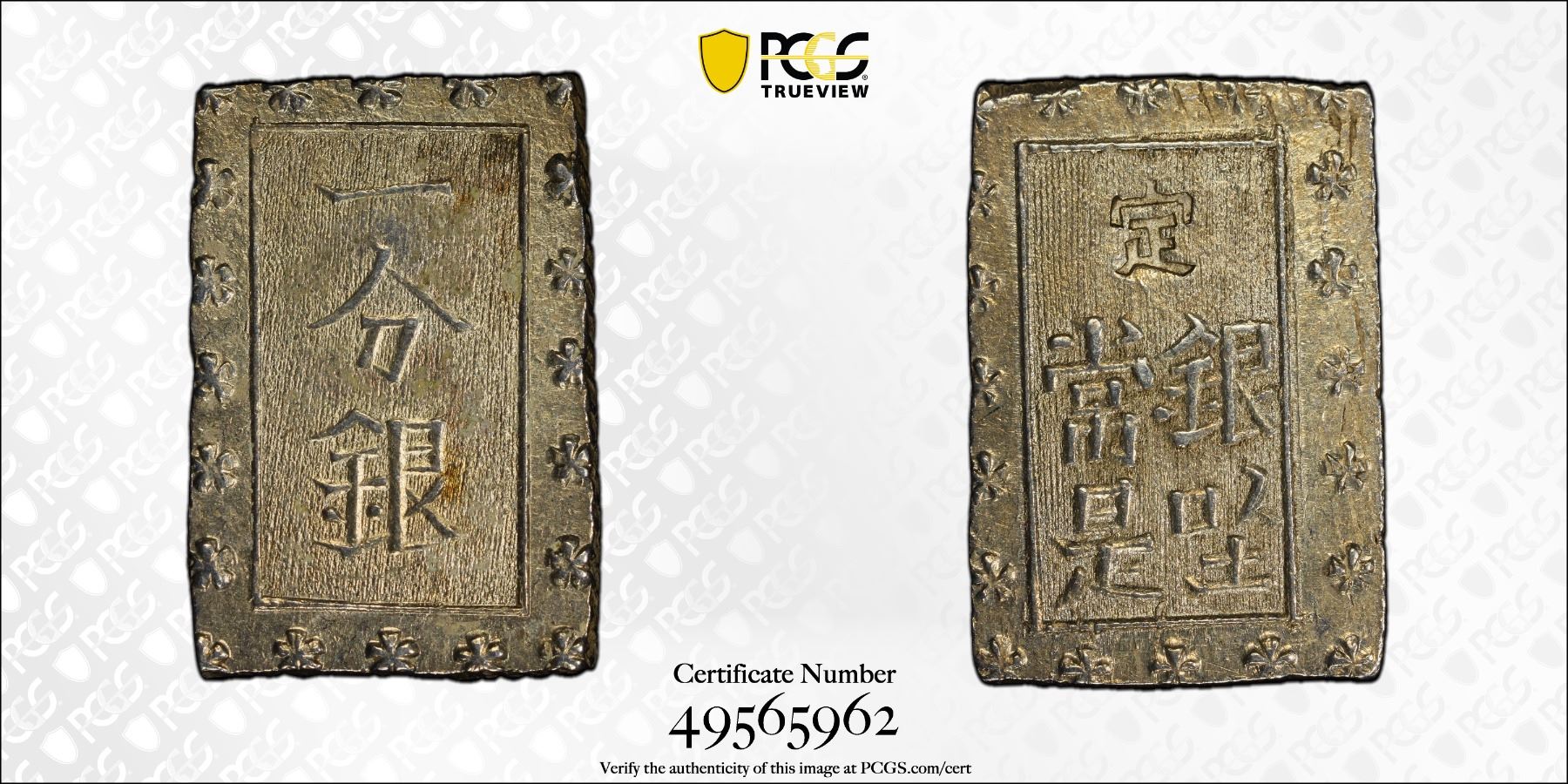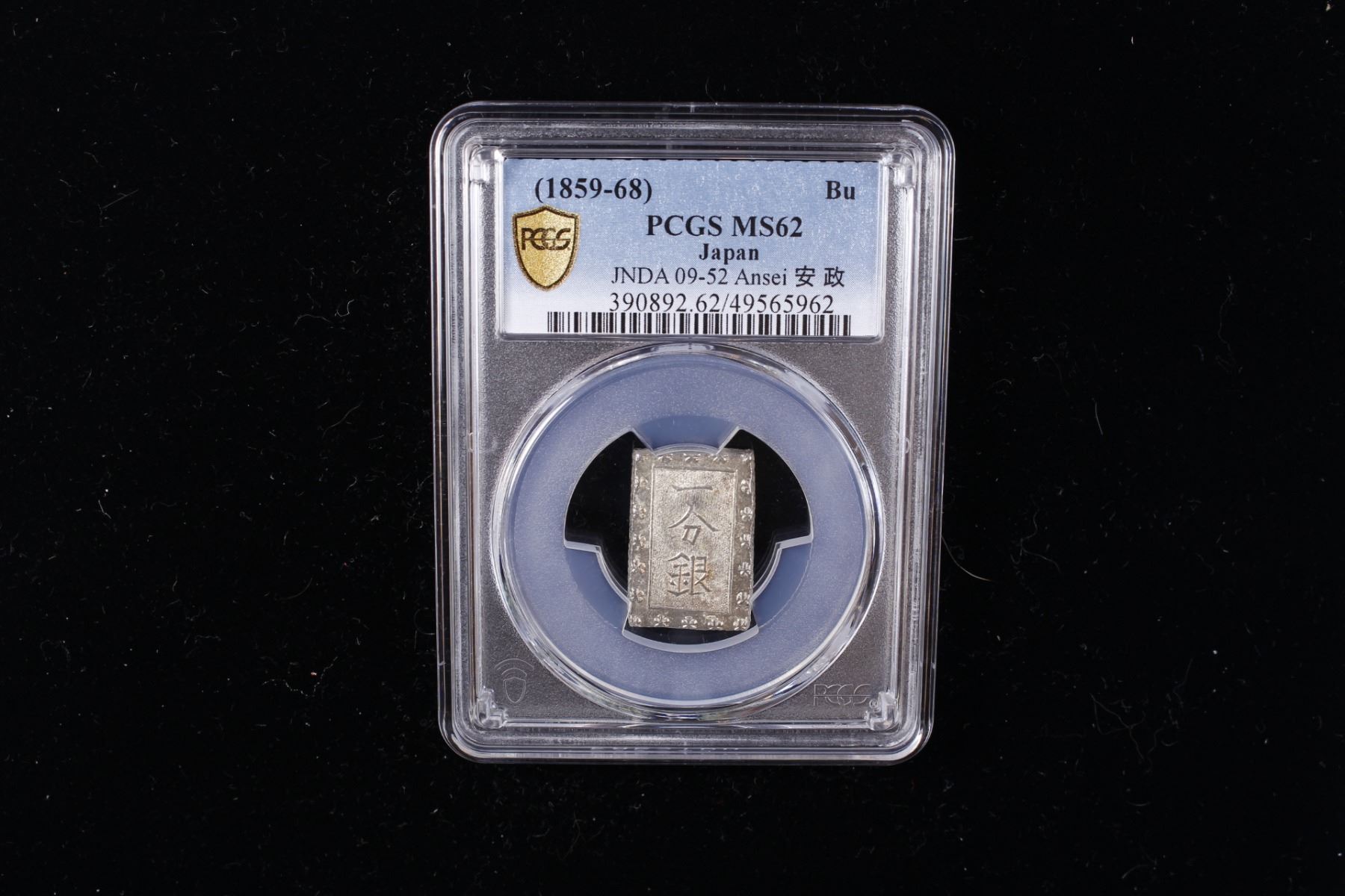 JAPAN: Ansei, 1854-1860, AR bu (ichibu), ND (1859-68), Cr-16a, JNDA-09-52, rectangular, lustrous, PCGS graded MS62.