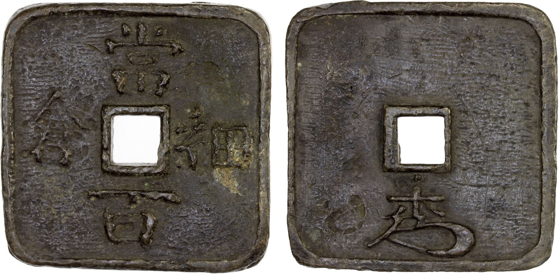 JAPAN: Bunkyu, 1861-1864, lead 100 mon (175.14g), Hosokura Mint, Mutsu Province, H-6.8, JNDA-140.17, 60mm, legend hosokura to hyaku, with official's signature on reverse, cast in the 4th year of the Bunkyu era (1864), VF. Made by the Sendai clan at the Hosokura Mint in Mutsu province. It is said that because it was so heavy and inconvenient to carry, a smaller 10 mon piece was made, but this has not been recorded.