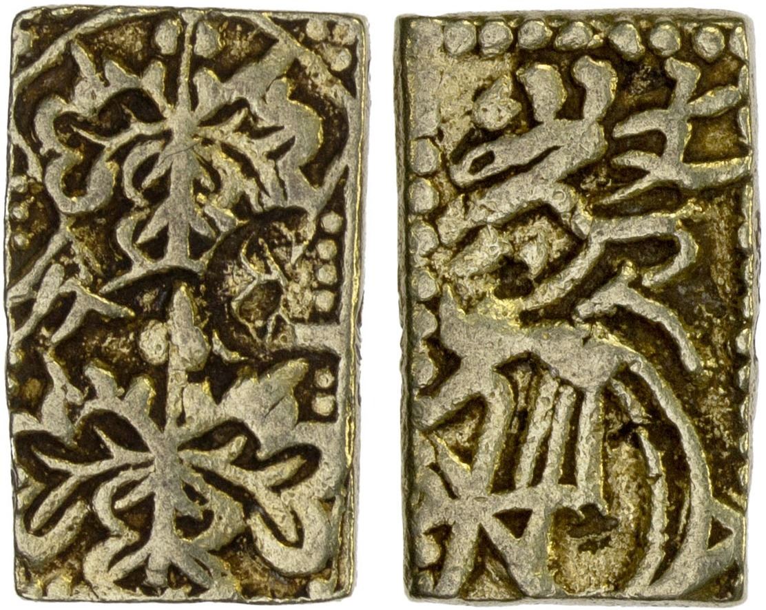 JAPAN: Genbun, 1736-1741, AV bu (3.31g), Edo mint, H-8.42, JNDA-09-37, Kiri crests top and bottom, denomination ichi bu either side // characters for the Mint Official and his signature, era name [Gen]bun, at top right, struck 1736-1818 in good quality gold with standard Japanese banker's marks, VF.