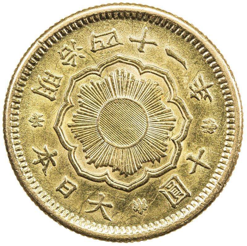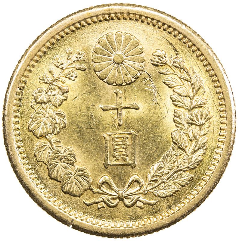 JAPAN: Meiji, 1867-1912, AV 10 yen, year 41 (1908), Y-33, Fr-51, a few hairlines and field marks, VF.