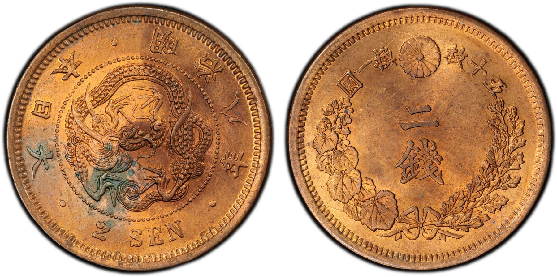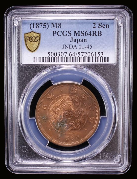 JAPAN: Meiji, 1868-1912, AE 2 sen, year 8 (1875), PCGS MS64 RB