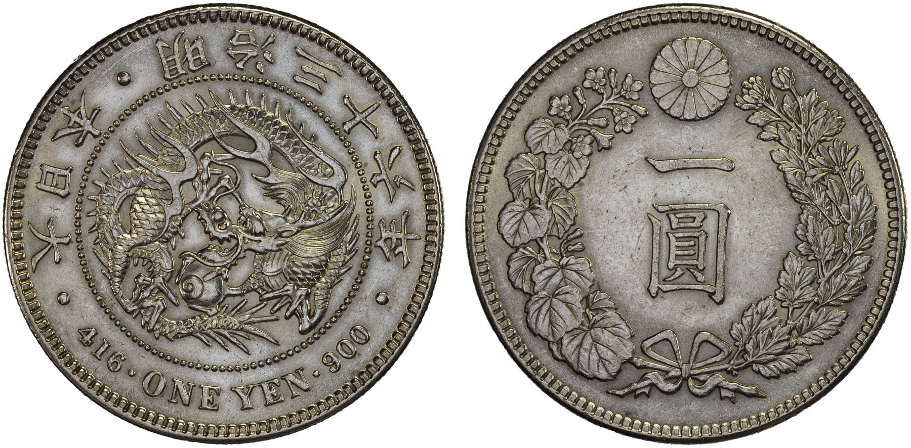 JAPAN: Meiji, 1868-1912, AR yen, year 36 (1903), Unc