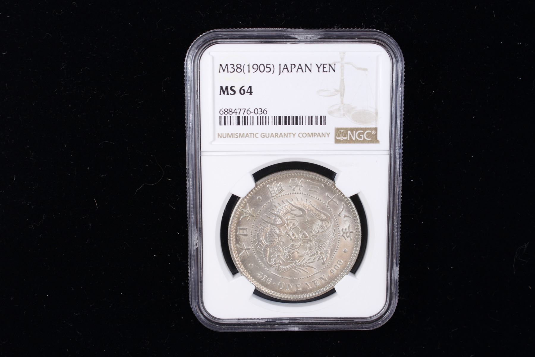 JAPAN: Meiji, 1868-1912, AR yen, year 38 (1905), Y-A25.3, JNDA-01-10A, a wonderful lustrous mint state example! NGC graded MS64.