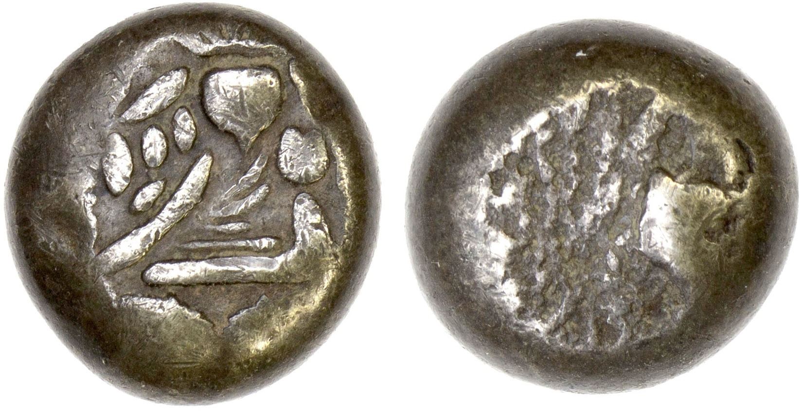 JAPAN: Shotoku / Kyoho, 1711-1736, AR mameita-gin (4.68g), H-9.36a, JNDA-09-69, so-called "bean money", with Daikoku, the God of Wealth, most of design off flan as usual for type, in .800 fine silver, struck 1714-36, VF. The Japanese "mameita-gin," also known as "bean money," is made from silver alloys using the "yudoko-buki" method: molten metal is poured into a cloth (such as linen) submerged in hot water. The designs were hammered into the cooling silver. "Mameita gin" were produced from around 1620 until the 1850s. The weight of the produced coins varied considerably, and they were used more like bullion rather than units of account.