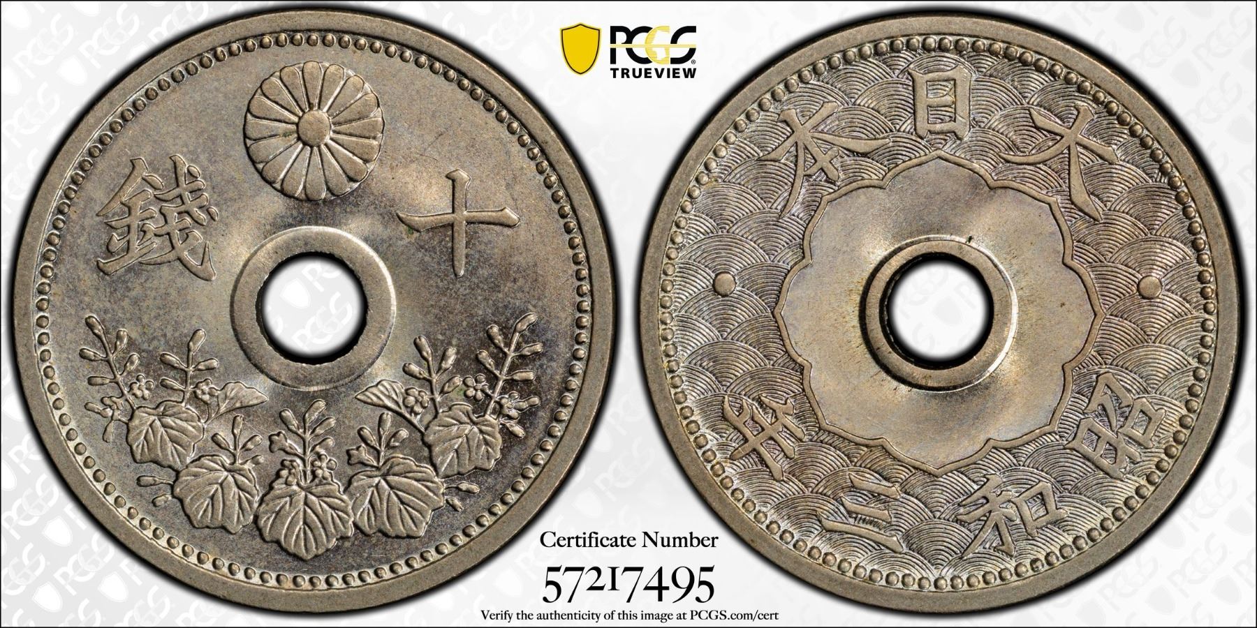 JAPAN: Showa, 1926-1989, 10 sen, year 3 (1928), Y-49, JNDA-01-27, copper-nickel, a fantastic quality example! PCGS graded MS66.