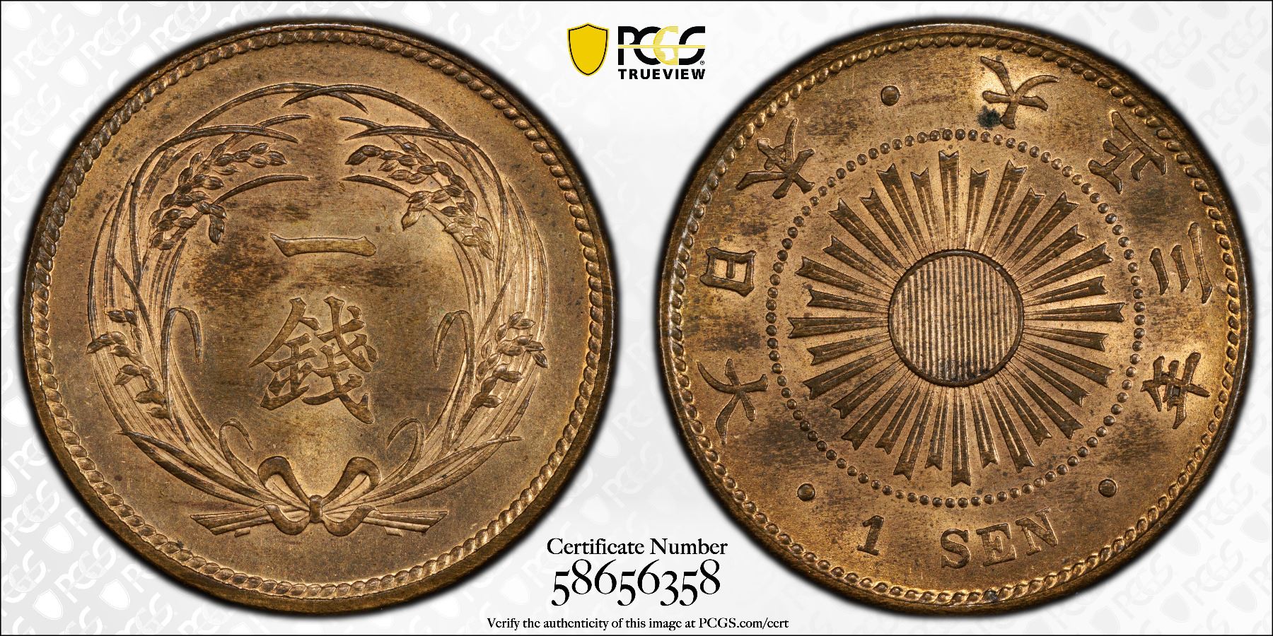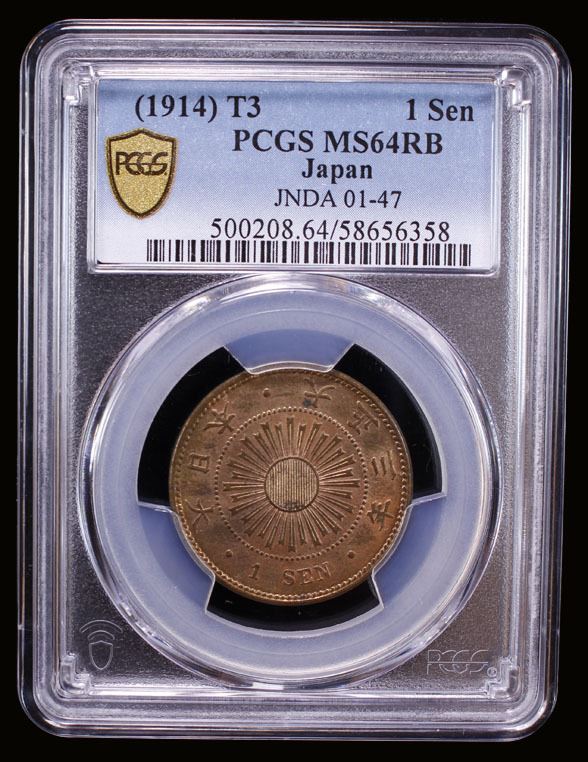 JAPAN: Taisho, 1912-1926, AE sen, year 3 (1914), PCGS MS64 RB